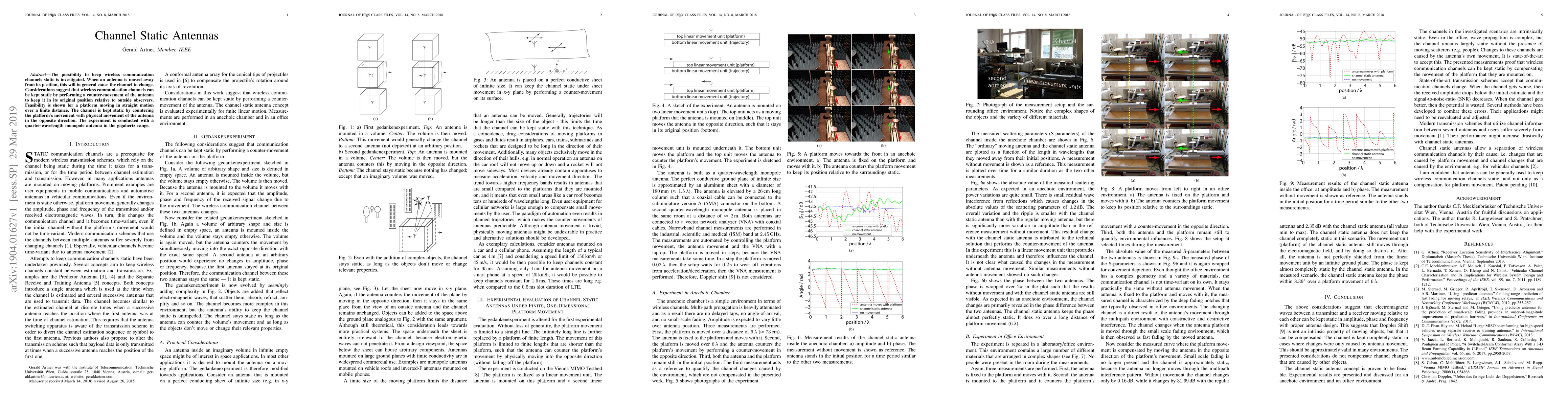 This research explores maintaining static wireless communication channels by countering antenna movement with platform motion, demonstrating feasibility through experiments with a quarter-wavelength monopole antenna in the gigahertz range. The study shows that by physically moving the antenna opposite to the platform's movement, the channel remains static relative to outside observers.