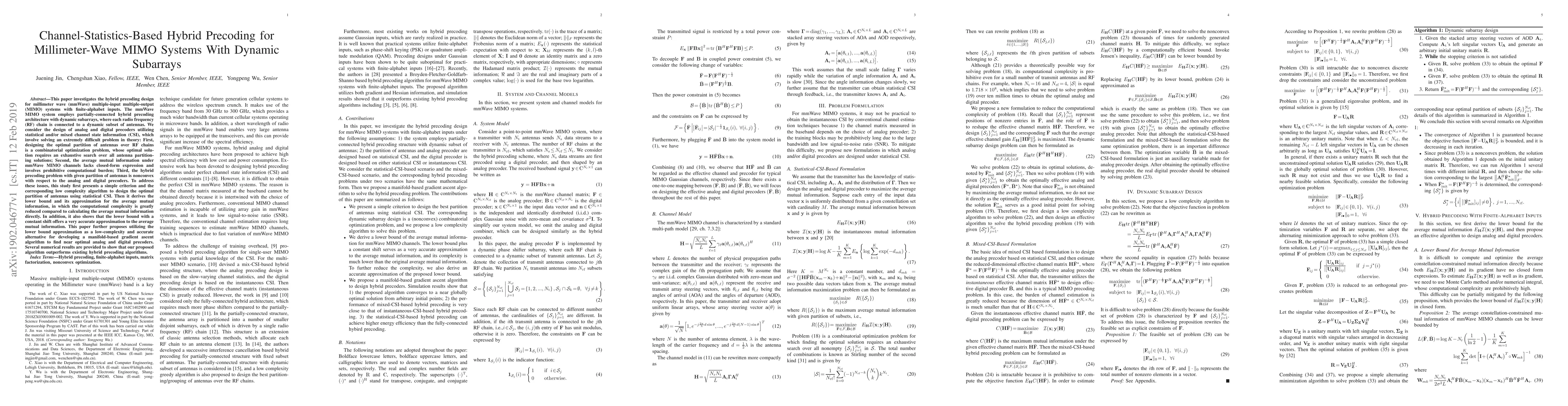 This paper proposes a hybrid precoding design for millimeter-wave MIMO systems with dynamic subarrays, utilizing statistical channel state information and a low-complexity algorithm to optimize antenna partitioning. It also introduces a lower bound approximation for average mutual information to reduce computational complexity and develop a gradient ascent algorithm for near-optimal precoders.