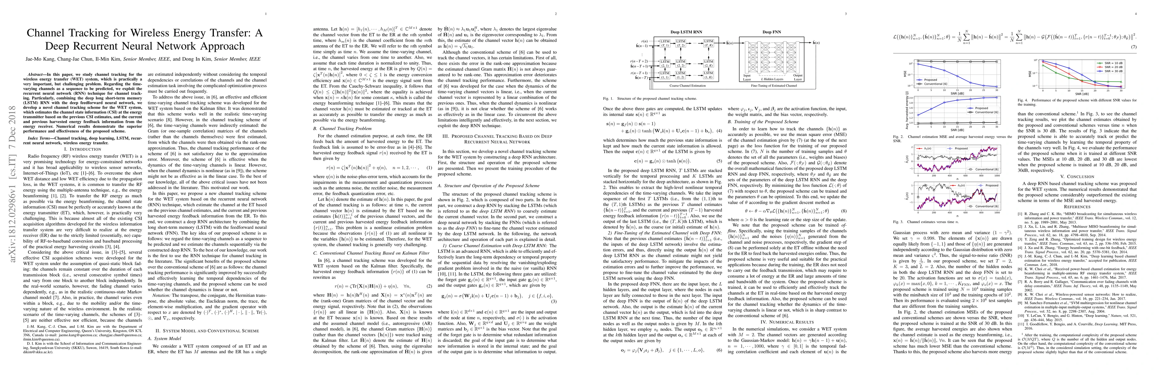This paper proposes a deep recurrent neural network approach, combining deep LSTM with a feedforward neural network, for channel tracking in wireless energy transfer systems. The method estimates channel state information using previous CSI estimates and harvested energy feedback, demonstrating superior performance.
