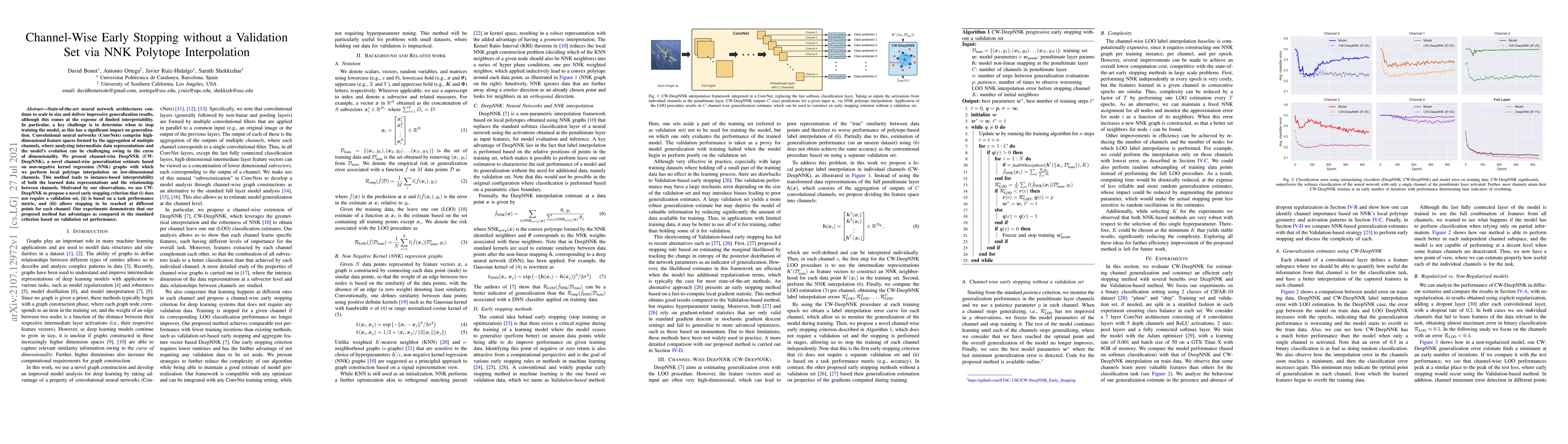 This paper introduces CW-DeepNNK, a method for channel-wise early stopping in ConvNets using NNK polytope interpolation, which provides interpretability without a validation set. The proposed criterion allows for different stopping points per channel, improving training efficiency and performance.