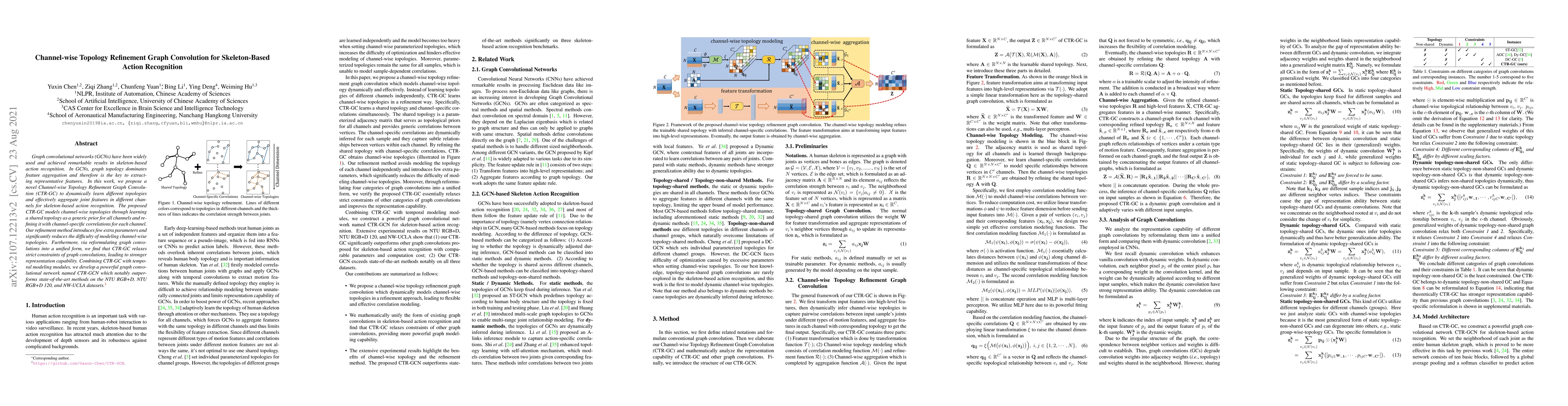 This paper introduces a Channel-wise Topology Refinement Graph Convolution (CTR-GC) to dynamically learn different graph topologies for skeleton-based action recognition, improving feature aggregation across joint channels. The proposed CTR-GCN framework outperforms existing methods on several datasets, leveraging a refined topology approach with minimal added complexity.