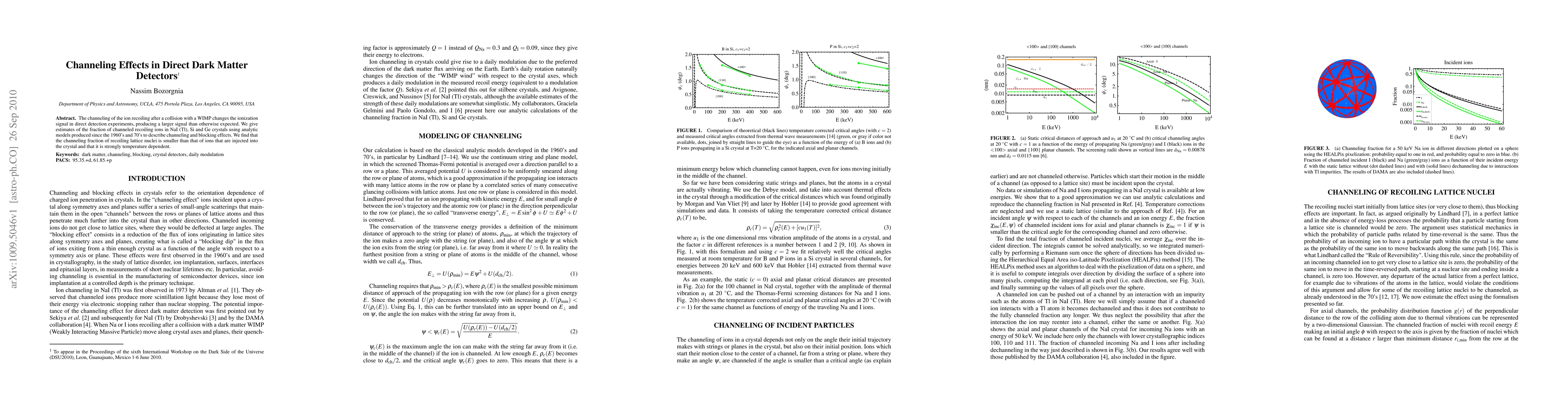 The channeling of the ion recoiling after a collision with a WIMP changes the ionization signal in direct detection experiments, producing a larger signal than otherwise expected. We give estimates of the fraction of channeled recoiling ions in NaI (Tl), Si and Ge crystals using analytic models produced since the 1960's and 70's to describe channeling and blocking effects. We find that the channeling fraction of recoiling lattice nuclei is smaller than that of ions that are injected into the crystal and that it is strongly temperature dependent.
