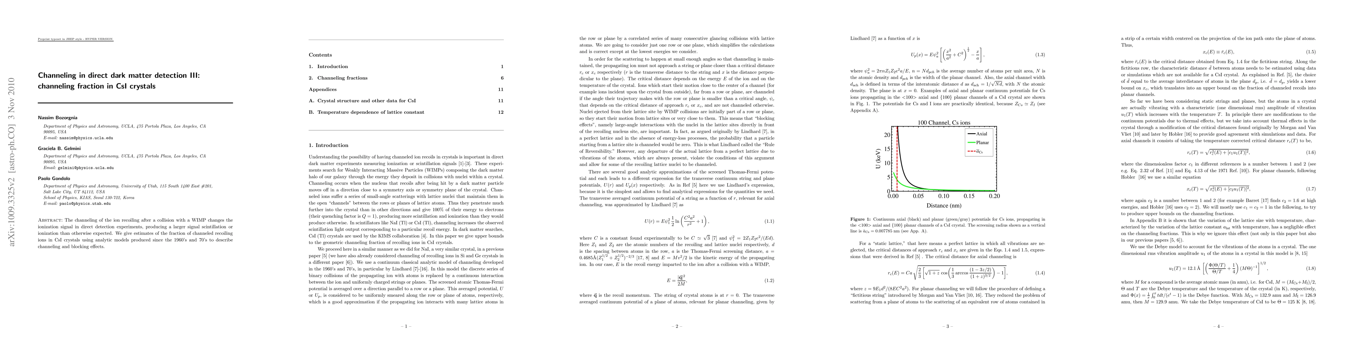 The channeling of the ion recoiling after a collision with a WIMP changes the ionization signal in direct detection experiments, producing a larger signal scintillation or ionization than otherwise expected. We give estimates of the fraction of channeled recoiling ions in CsI crystals using analytic models produced since the 1960's and 70's to describe channeling and blocking effects.