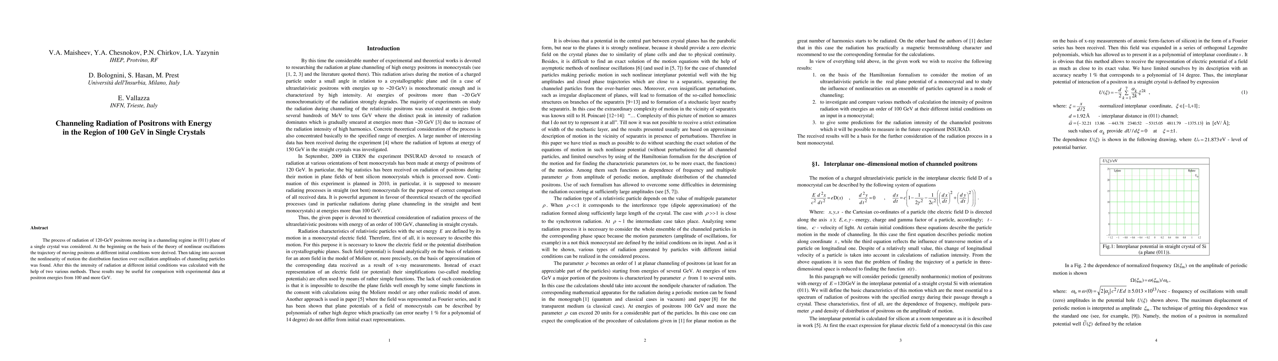 The process of radiation of 120-GeV positrons moving in a channeling regime in (011) plane of a single crystal was considered. At the beginning on the basis of the theory of nonlinear oscillations the trajectory of moving positrons at different initial conditions were derived. Then taking into account the nonlinearity of motion the distribution function over oscillation amplitudes of channeling particles was found. After this the intensity of radiation at different initial conditions was calculated with the help of two various methods. These results may be useful for comparison with experimental data at positron energies from 100 and more GeV.