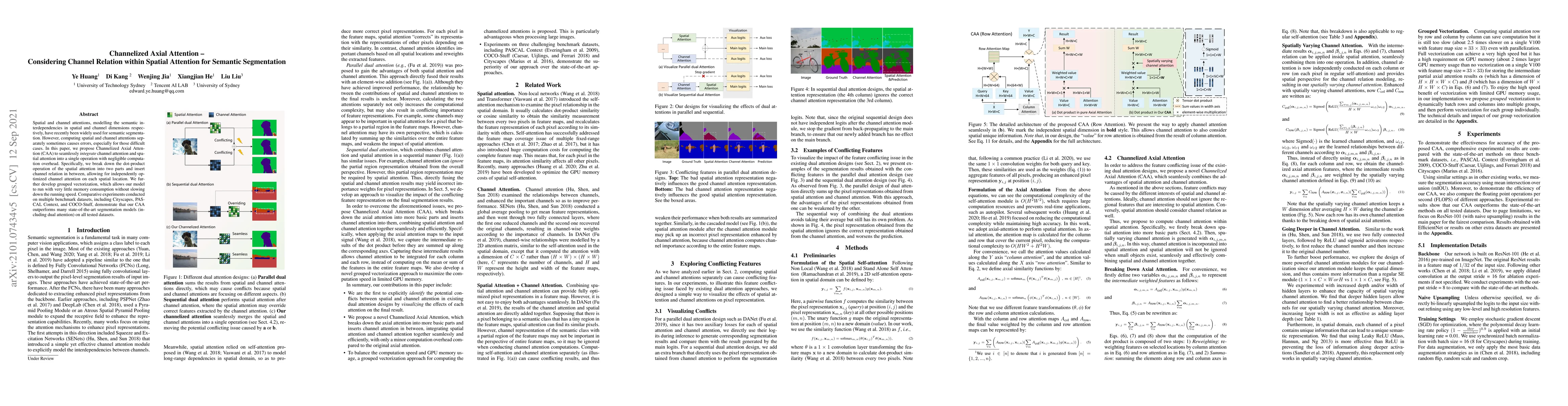 The paper proposes Channelized Axial Attention (CAA) to integrate channel and spatial attentions for semantic segmentation, achieving better performance than state-of-the-art models on benchmark datasets. CAA optimizes channel attention at each spatial location and uses grouped vectorization to minimize memory usage without sacrificing speed.