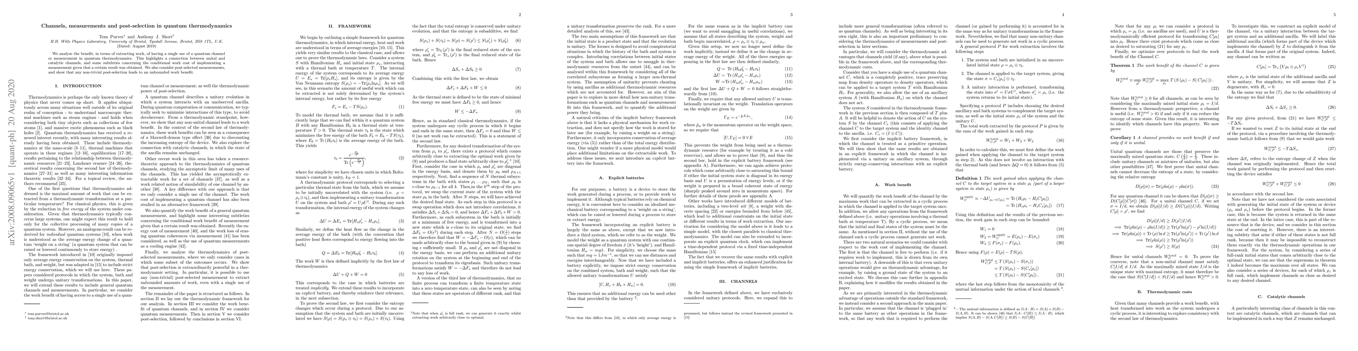 This paper explores the advantages of using quantum channels and measurements once in quantum thermodynamics, revealing connections between unital and catalytic channels and the conditional work cost of measurements. It also demonstrates that non-trivial post-selection can lead to unbounded work benefits.