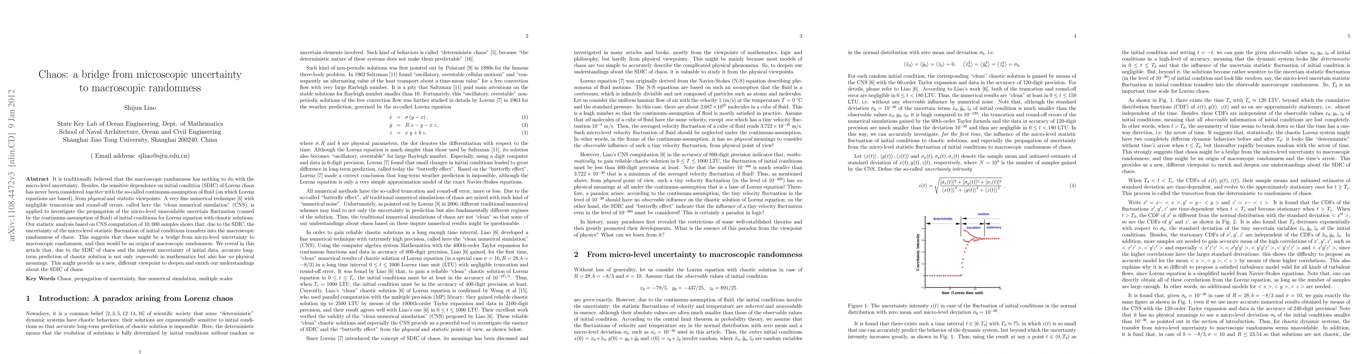 This paper investigates the connection between microscopic uncertainty and macroscopic chaos using a "clean numerical simulation" technique. It demonstrates that the sensitive dependence on initial conditions in Lorenz chaos translates micro-level uncertainties into macroscopic randomness, suggesting chaos as a bridge between the two. The study concludes that accurate long-term predictions of chaotic systems are inherently impossible due to this sensitivity.