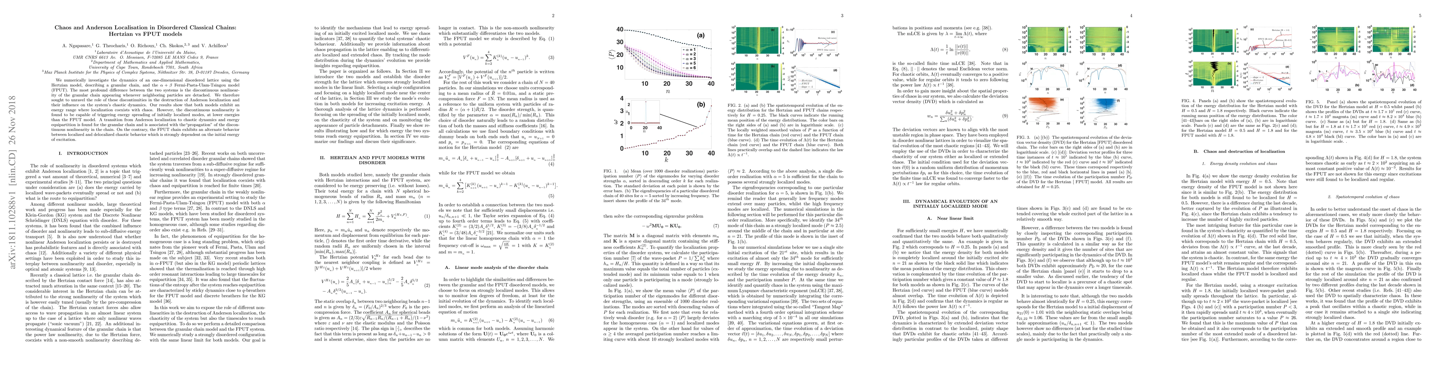 This paper investigates the dynamics of one-dimensional disordered lattices using Hertzian and FPUT models, focusing on the role of discontinuous nonlinearity in chaos and Anderson localization. The study finds that the Hertzian model, with its discontinuous nonlinearity, triggers energy spreading at lower energies, leading to a transition from localization to chaotic dynamics, unlike the FPUT model which shows a dependency on initial energy for its chaotic behavior.