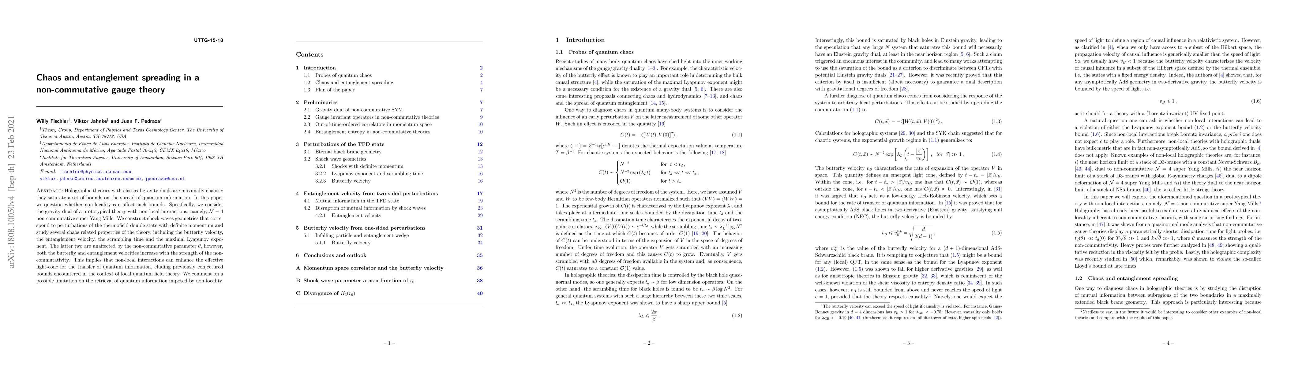 Holographic theories with classical gravity duals are maximally chaotic: they saturate a set of bounds on the spread of quantum information. In this paper we question whether non-locality can affect such bounds. Specifically, we consider the gravity dual of a prototypical theory with non-local interactions, namely, $\mathcal{N}=4$ non-commutative super Yang Mills. We construct shock waves geometries that correspond to perturbations of the thermofield double state with definite momentum and study several chaos related properties of the theory, including the butterfly velocity, the entanglement velocity, the scrambling time and the maximal Lyapunov exponent. The latter two are unaffected by the non-commutative parameter $\theta$, however, both the butterfly and entanglement velocities increase with the strength of the non-commutativity. This implies that non-local interactions can enhance the effective light-cone for the transfer of quantum information, eluding previously conjectured bounds encountered in the context of local quantum field theory. We comment on a possible limitation on the retrieval of quantum information imposed by non-locality.