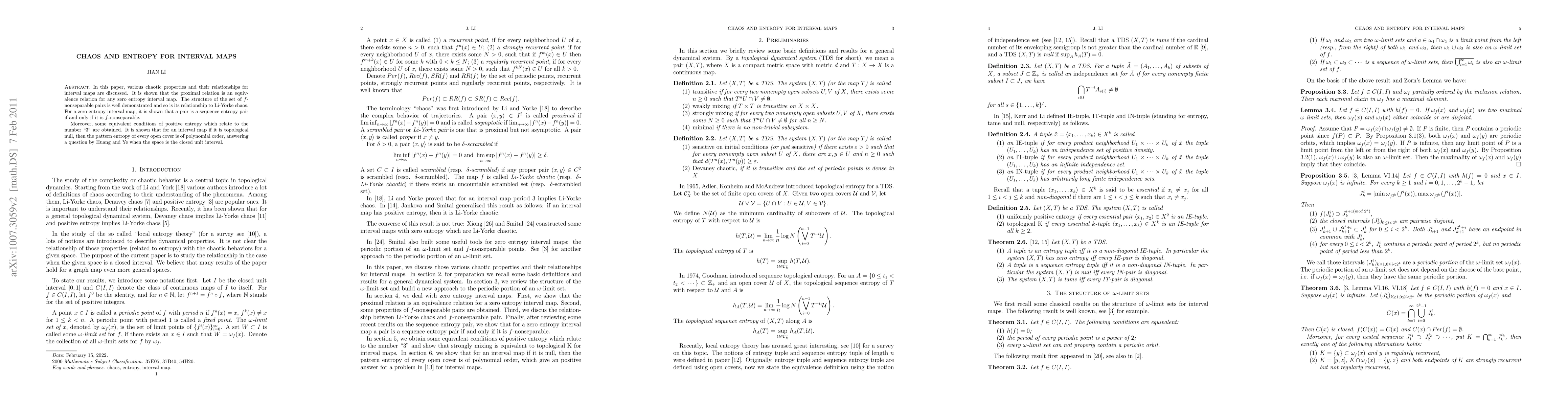 This paper explores chaotic properties and entropy in interval maps, demonstrating that the proximal relation is an equivalence for zero entropy maps. It also links $f$-nonseparable pairs to Li-Yorke chaos and establishes conditions for positive entropy related to the number "3". Additionally, it proves that topological nullity in interval maps results in polynomial-order pattern entropy for every open cover.