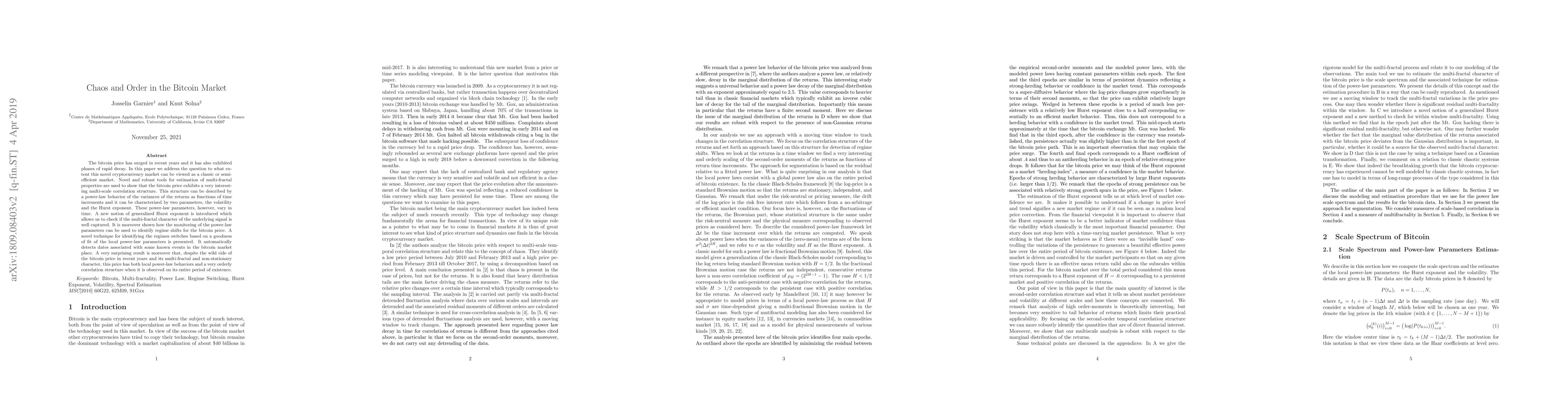 The bitcoin price has surged in recent years and it has also exhibited phases of rapid decay. In this paper we address the question to what extent this novel cryptocurrency market can be viewed as a classic or semi-efficient market. Novel and robust tools for estimation of multi-fractal properties are used to show that the bitcoin price exhibits a very interesting multi-scale correlation structure. This structure can be described by a power-law behavior of the variances of the returns as functions of time increments and it can be characterized by two parameters, the volatility and the Hurst exponent. These power-law parameters, however, vary in time. A new notion of generalized Hurst exponent is introduced which allows us to check if the multi-fractal character of the underlying signal is well captured. It is moreover shown how the monitoring of the power-law parameters can be used to identify regime shifts for the bitcoin price. A novel technique for identifying the regimes switches based on a goodness of fit of the local power-law parameters is presented. It automatically detects dates associated with some known events in the bitcoin market place. A very surprising result is moreover that, despite the wild ride of the bitcoin price in recent years and its multi-fractal and non-stationary character, this price has both local power-law behaviors and a very orderly correlation structure when it is observed on its entire period of existence.