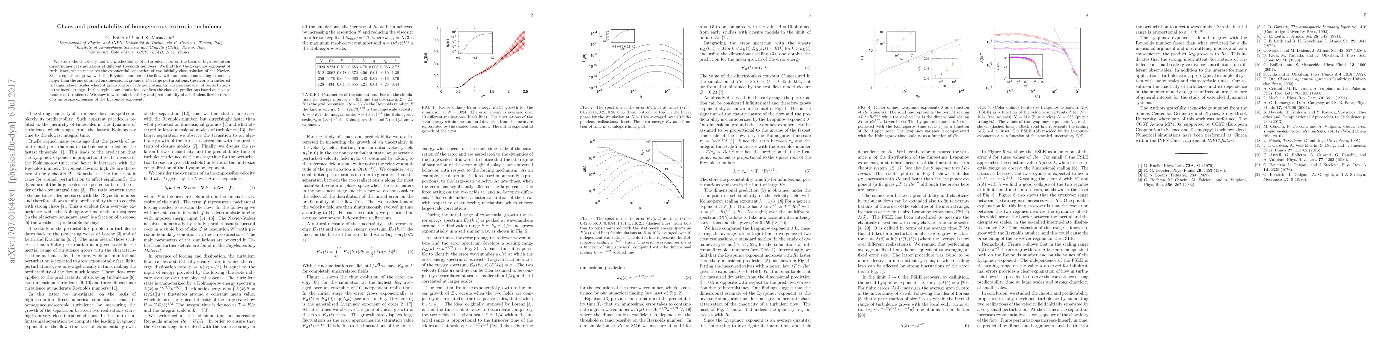 This paper investigates the chaotic nature and predictability of homogeneous-isotropic turbulence through high-resolution simulations, revealing that the Lyapunov exponent increases with Reynolds number with an anomalous scaling. It also demonstrates an "inverse cascade" of perturbations in the inertial range, confirming classical turbulence predictions.