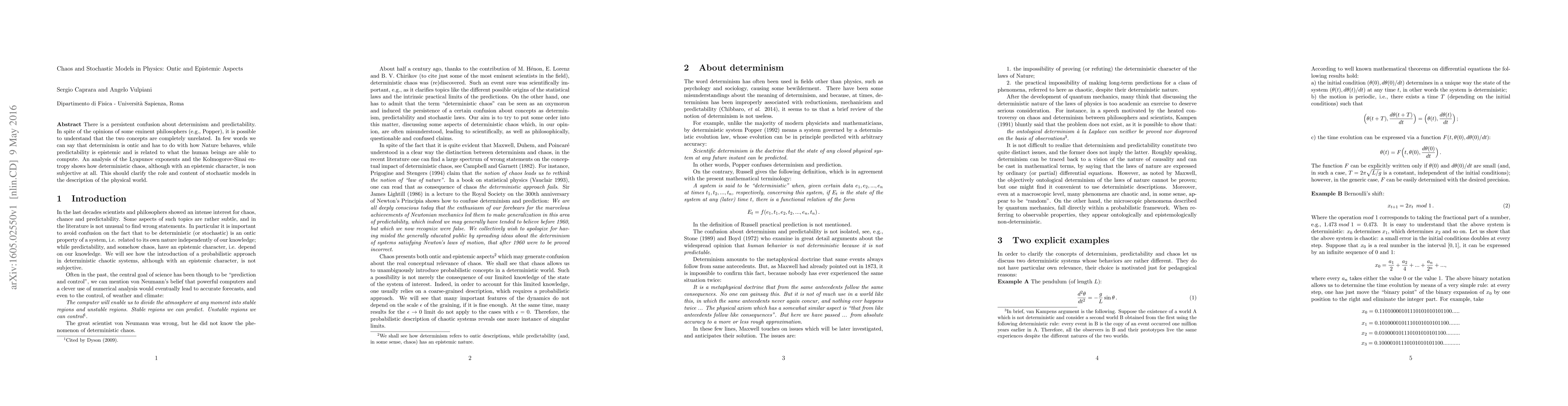 There is a persistent confusion about determinism and predictability. In spite of the opinions of some eminent philosophers (e.g., Popper), it is possible to understand that the two concepts are completely unrelated. In few words we can say that determinism is ontic and has to do with how Nature behaves, while predictability is epistemic and is related to what the human beings are able to compute. An analysis of the Lyapunov exponents and the Kolmogorov-Sinai entropy shows how deterministic chaos, although with an epistemic character, is non subjective at all. This should clarify the role and content of stochastic models in the description of the physical world.