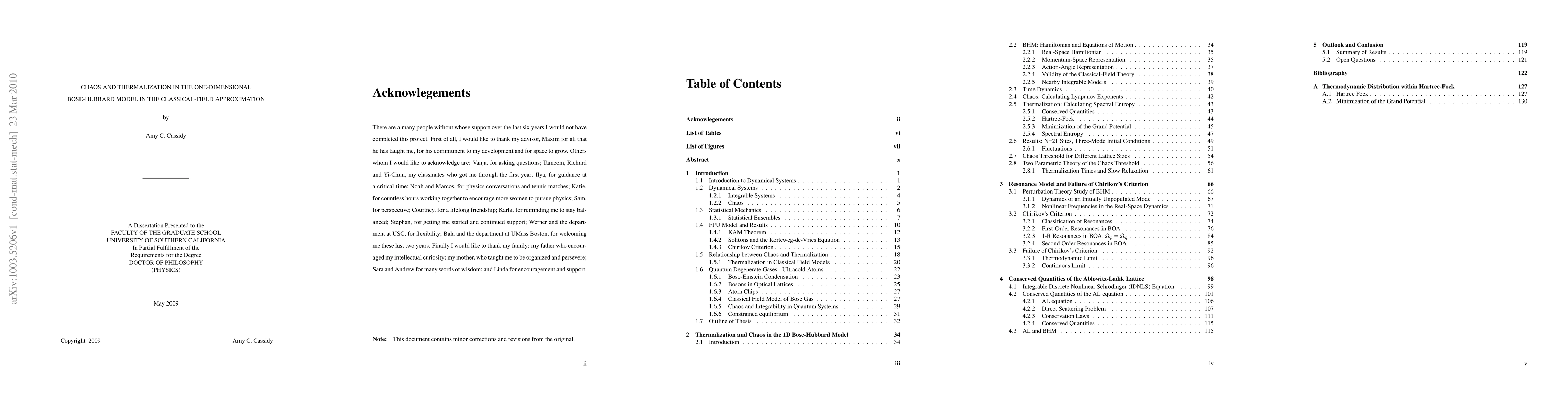 In this thesis, we present a comprehensive study of chaos and thermalization of the one-dimensional Bose-Hubbard Model (BHM) within the classical field approximation. Two quantitative measures are compared: the ensemble-averaged Finite-time Maximal Lyapunov exponent, a measures of chaos and the normalized spectral entropy, a measure of the distance between the numerical time-averaged momentum distribution and the one predicted by thermodynamics. A threshold for chaos is found, which depends on two parameters, the nonlinearity and the total energy-per-particle. Below the threshold, the dynamics are regular, while far above the threshold, complete thermalization is observed, as measured by the normalized spectral entropy. We study individual resonances in the Bose-Hubbard model to determine the criterion for chaos. The criterion based on Chirikov's method of overlapping resonances diverges in the thermodynamic limit, in contrast to the criterion parameters inferred from numerical calculations, signifying the failure of the standard Chirikov's approach. The Ablowitz-Ladik lattice is one of several integrable models that are close to the BHM. We outline the method of Inverse Scattering Transform and generate the integrals of motion of the Ablowitz-Ladik lattice. Furthermore, we discuss the possible role of these quantities in the relaxation dynamics of the BHM.
