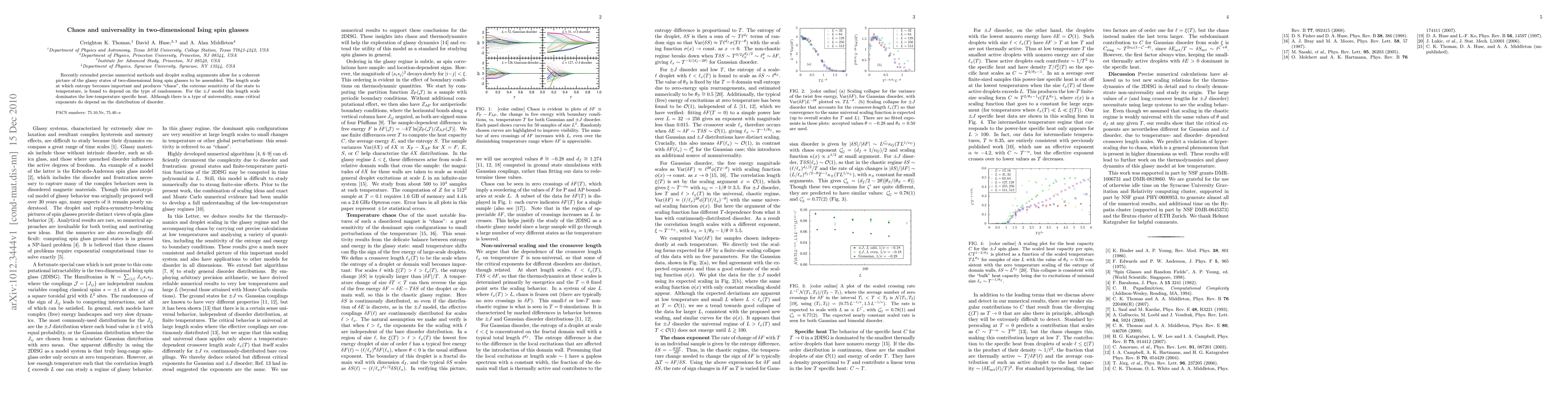 This paper uses advanced numerical techniques and scaling arguments to explore the chaotic behavior in two-dimensional Ising spin glasses, revealing that the length scale of entropy-induced chaos varies with the randomness type, and while some universal critical exponents exist, others depend on the disorder distribution.
