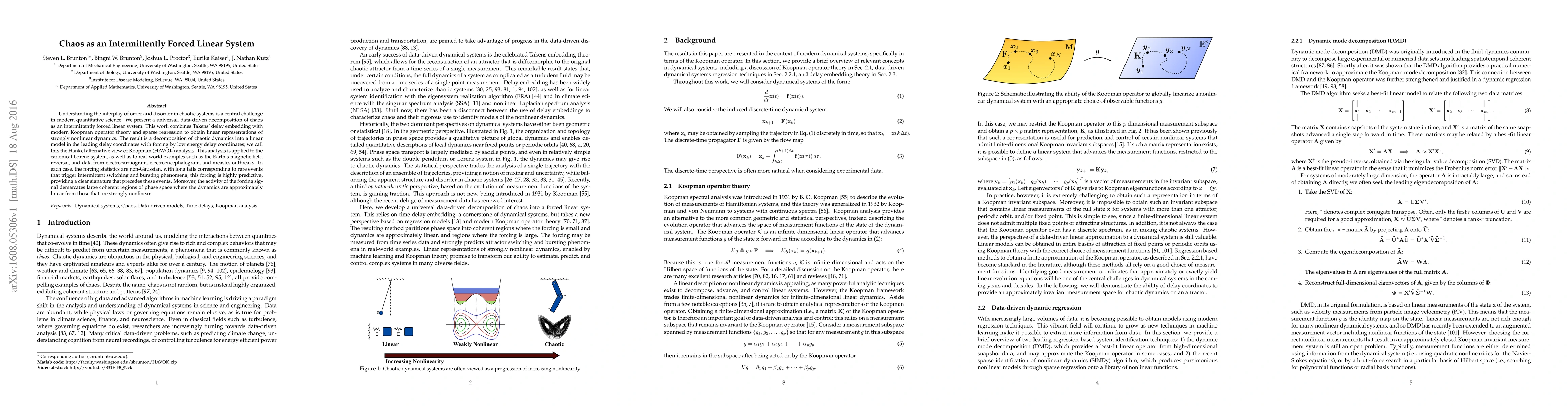This paper decomposes chaos into an intermittently forced linear system using Takens' delay embedding and Koopman operator theory, revealing rare events' predictive signatures in systems like the Lorenz system and real-world phenomena. The HAVOK analysis identifies linear dynamics regions amidst nonlinear chaos.