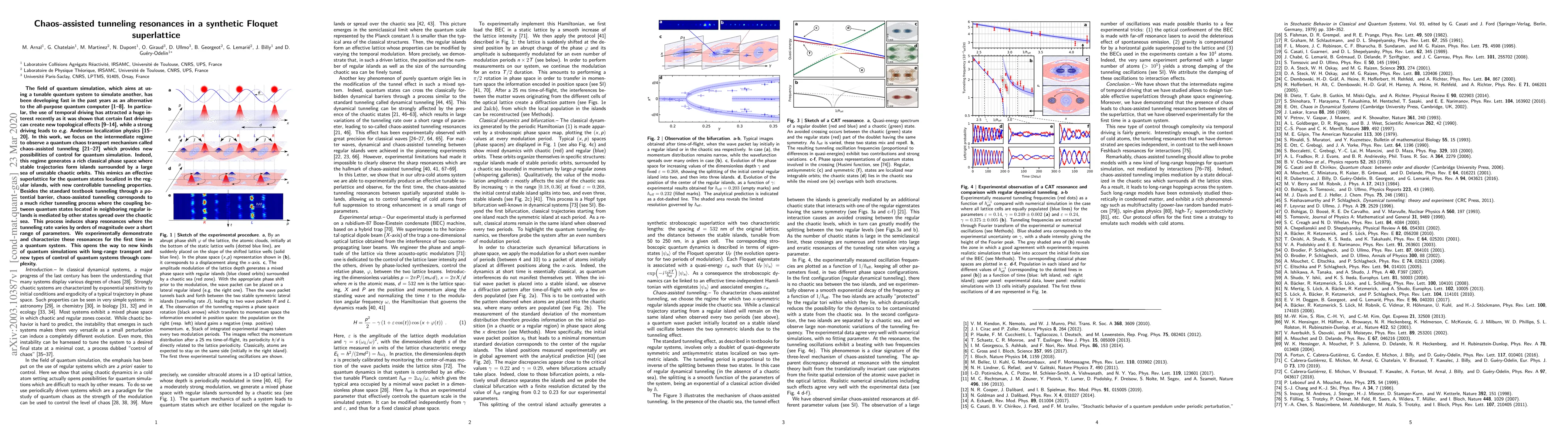 The field of quantum simulation, which aims at using a tunable quantum system to simulate another, has been developing fast in the past years as an alternative to the all-purpose quantum computer. In particular, the use of temporal driving has attracted a huge interest recently as it was shown that certain fast drivings can create new topological effects, while a strong driving leads to e.g. Anderson localization physics. In this work, we focus on the intermediate regime to observe a quantum chaos transport mechanism called chaos-assisted tunneling which provides new possibilities of control for quantum simulation. Indeed, this regime generates a rich classical phase space where stable trajectories form islands surrounded by a large sea of unstable chaotic orbits. This mimics an effective superlattice for the quantum states localized in the regular islands, with new controllable tunneling properties. Besides the standard textbook tunneling through a potential barrier, chaos-assisted tunneling corresponds to a much richer tunneling process where the coupling between quantum states located in neighboring regular islands is mediated by other states spread over the chaotic sea. This process induces sharp resonances where the tunneling rate varies by orders of magnitude over a short range of parameters. We experimentally demonstrate and characterize these resonances for the first time in a quantum system. This opens the way to new kinds of quantum simulations with long-range transport and new types of control of quantum systems through complexity.