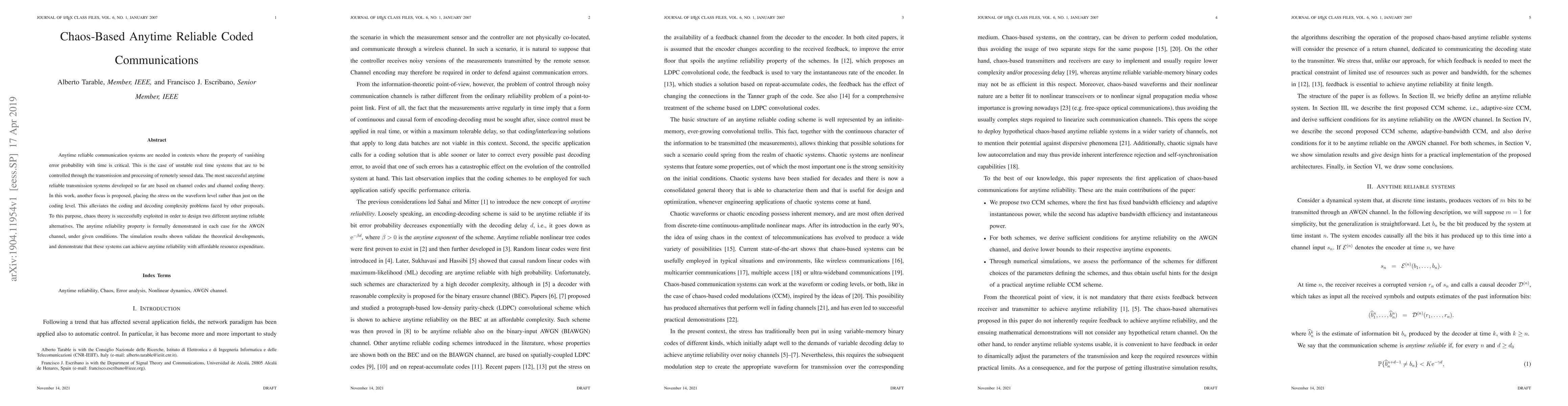 Anytime reliable communication systems are needed in contexts where the property of vanishing error probability with time is critical. This is the case of unstable real time systems that are to be controlled through the transmission and processing of remotely sensed data. The most successful anytime reliable transmission systems developed so far are based on channel codes and channel coding theory. In this work, another focus is proposed, placing the stress on the waveform level rather than just on the coding level. This alleviates the coding and decoding complexity problems faced by other proposals. To this purpose, chaos theory is successfully exploited in order to design two different anytime reliable alternatives. The anytime reliability property is formally demonstrated in each case for the AWGN channel, under given conditions. The simulation results shown validate the theoretical developments, and demonstrate that these systems can achieve anytime reliability with affordable resource expenditure.