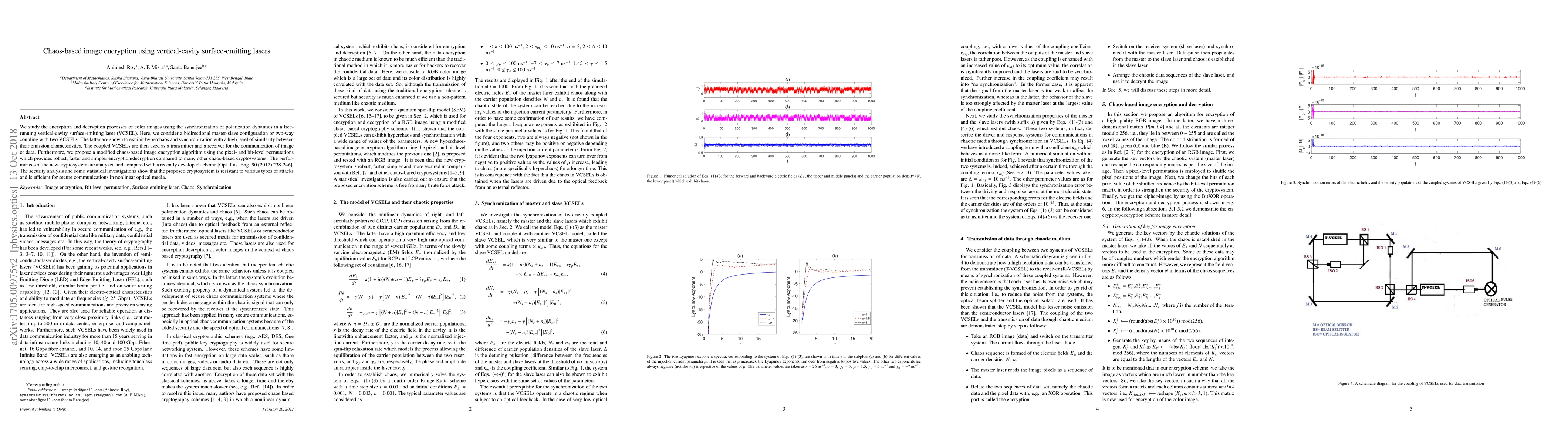 This paper proposes a novel chaos-based image encryption method using synchronized polarization dynamics in vertical-cavity surface-emitting lasers (VCSELs) for secure communication. The method employs a modified algorithm with pixel- and bit-level permutations, demonstrating robust, faster, and simpler encryption compared to existing systems.