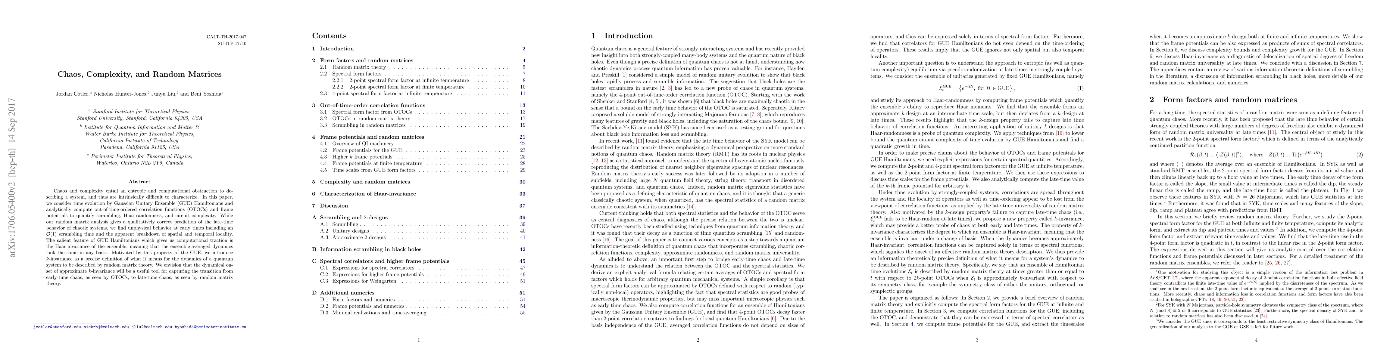 Researchers analyze chaotic systems using Gaussian Unitary Ensemble (GUE) Hamiltonians to quantify scrambling and chaos, revealing unphysical behavior at early times but providing a framework for understanding late-time chaos.