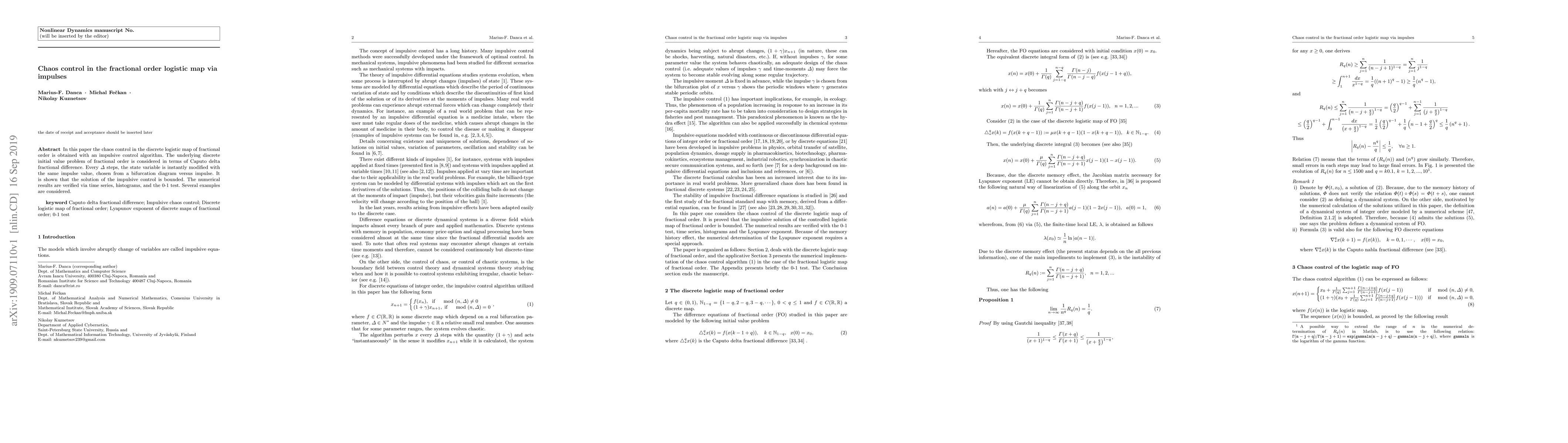 This paper explores chaos control in a fractional order logistic map using an impulsive control algorithm, demonstrating bounded solutions through numerical verification via time series, histograms, and the 0-1 test. The control impulses are chosen based on bifurcation diagrams.