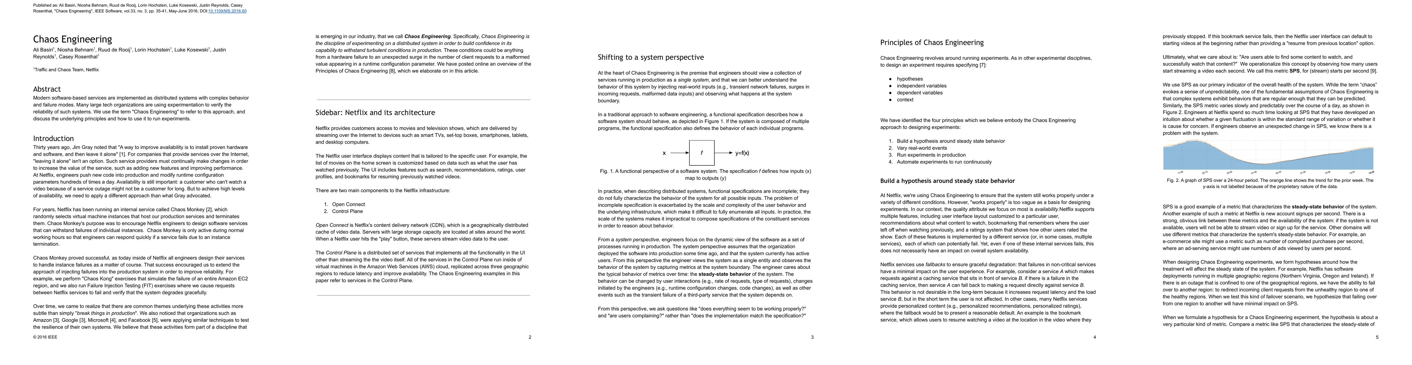 Modern software-based services are implemented as distributed systems with complex behavior and failure modes. Many large tech organizations are using experimentation to verify the reliability of such systems. We use the term "Chaos Engineering" to refer to this approach, and discuss the underlying principles and how to use it to run experiments.