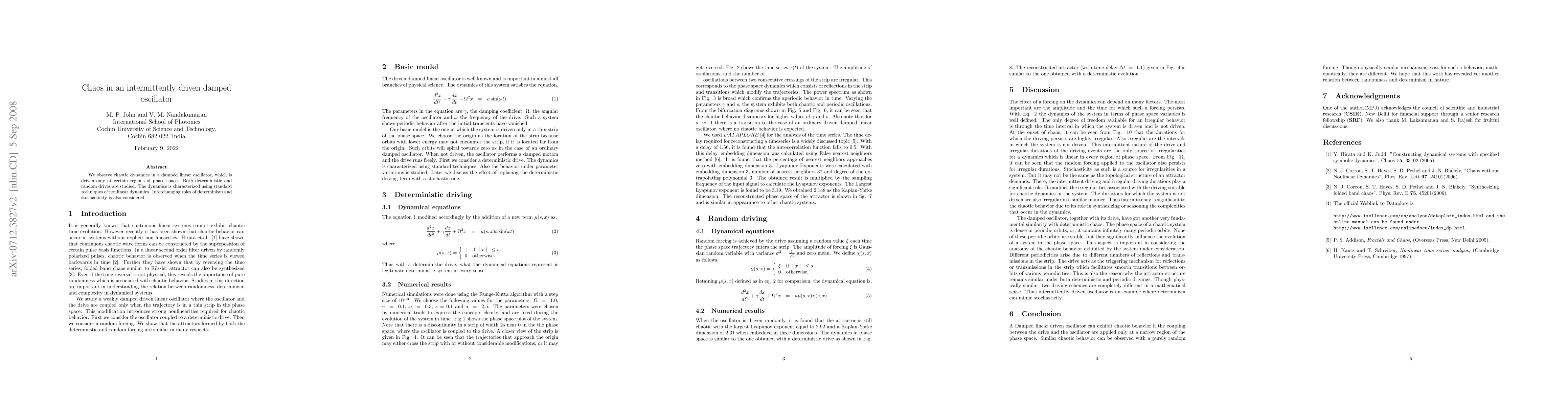 This paper investigates chaotic dynamics in a damped linear oscillator driven intermittently in specific phase space regions, examining both deterministic and random driving forces. The study characterizes the dynamics using nonlinear dynamics techniques and explores the interplay between determinism and stochasticity.