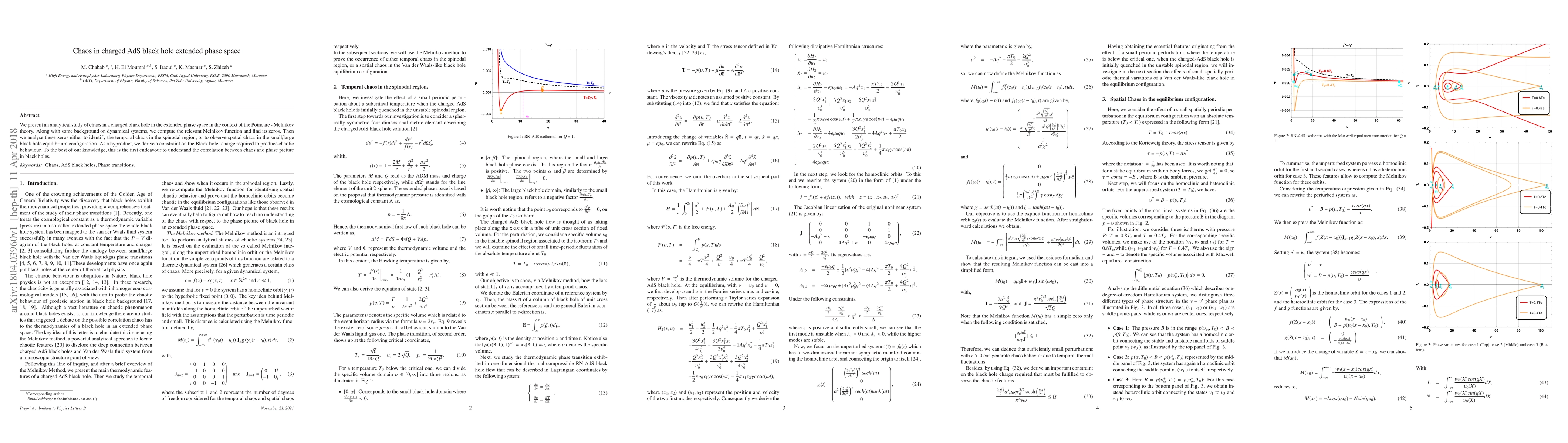 We present an analytical study of chaos in a charged black hole in the extended phase space in the context of the Poincare-Melnikov theory. Along with some background on dynamical systems, we compute the relevant Melnikov function and find its zeros. Then we analyse these zeros either to identify the temporal chaos in the spinodal region, or to observe spatial chaos in the small - large black hole equilibrium configuration. As a byproduct, we derive a constraint on the Black hole charge required to produce chaotic behaviour. To the best of our knowledge, this is the first endeavour to understand the correlation between chaos and phase picture in black holes.