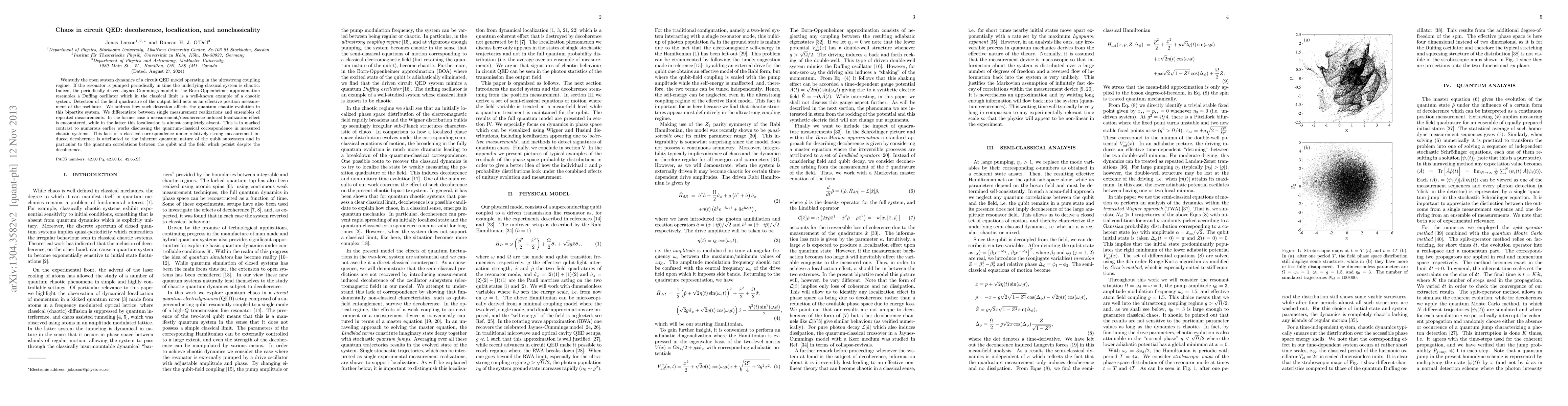 This paper investigates the dynamics of a circuit QED system in the ultrastrong coupling regime, revealing chaotic behavior in the periodically driven Jaynes-Cummings model. It examines the impact of field quadrature detection on quantum chaotic evolution, finding that single measurement realizations induce localization, while ensembles of measurements do not, due to persistent quantum correlations.