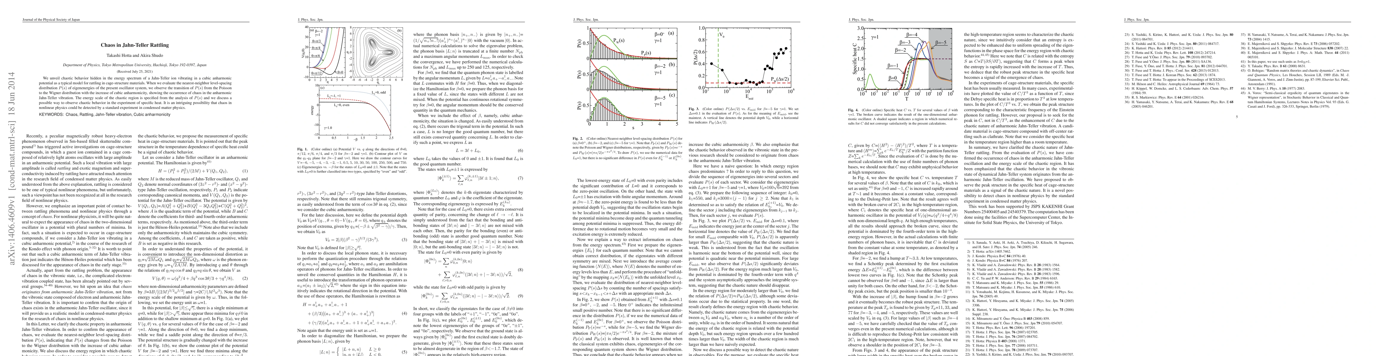 This research explores chaotic behavior in a Jahn-Teller ion within a cubic anharmonic potential, showing a transition in energy spectrum from Poisson to Wigner distribution with increased anharmonicity, indicating the emergence of chaos. The study discusses a potential experimental observation of this chaos via specific heat measurements.
