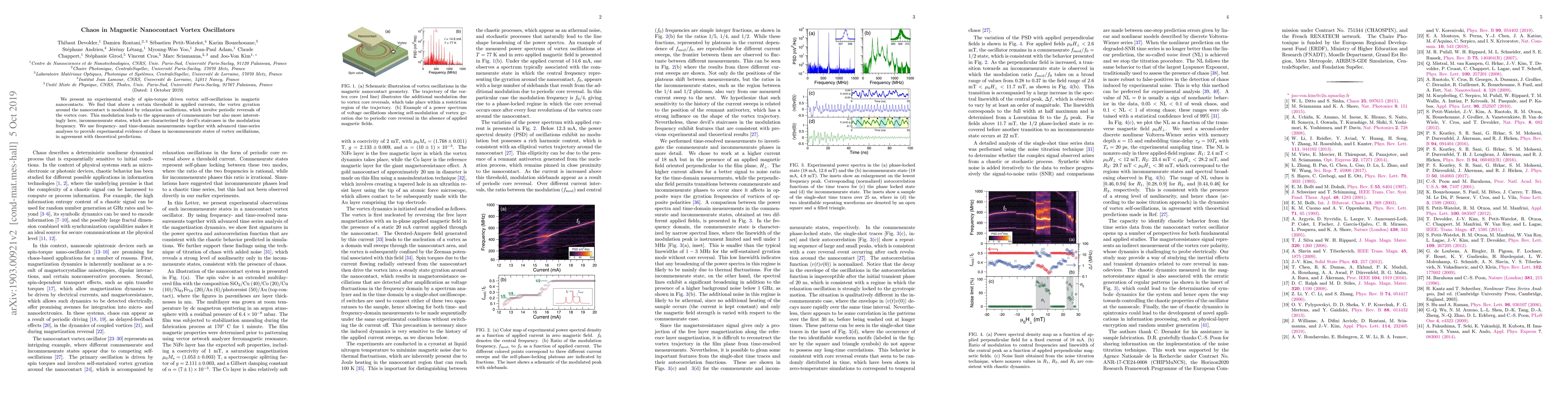 This study experimentally investigates vortex self-oscillations in magnetic nanocontacts driven by spin-torque, revealing chaos in incommensurate states characterized by modulation frequency devil's staircases, confirmed through frequency- and time-domain measurements and advanced time-series analyses.