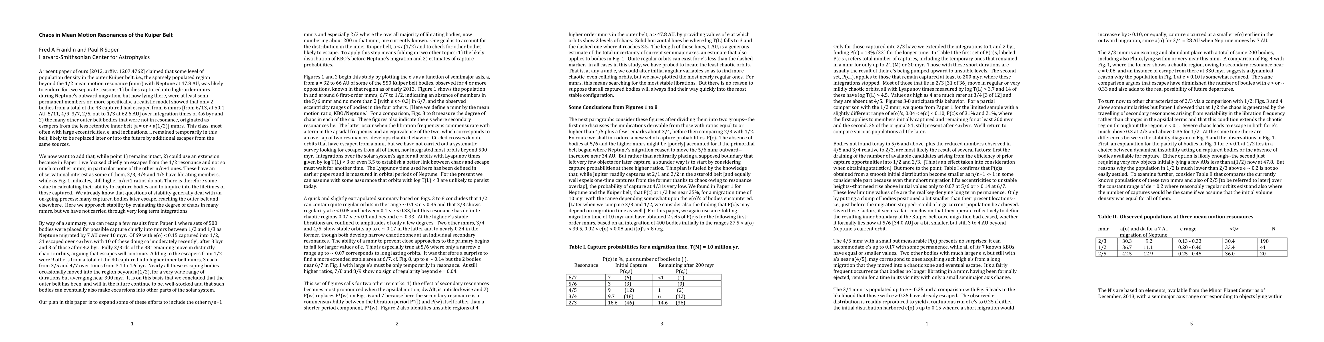 This paper investigates mean motion resonances in the Kuiper Belt, revealing that the maximum eccentricity levels in resonant bodies correlate with Lyapunov times of ~1000 Neptune orbits, indicating high chaos levels. The study suggests that most bodies with higher eccentricities have already escaped, but ongoing escapes are necessary to maintain the small population in the outer belt.