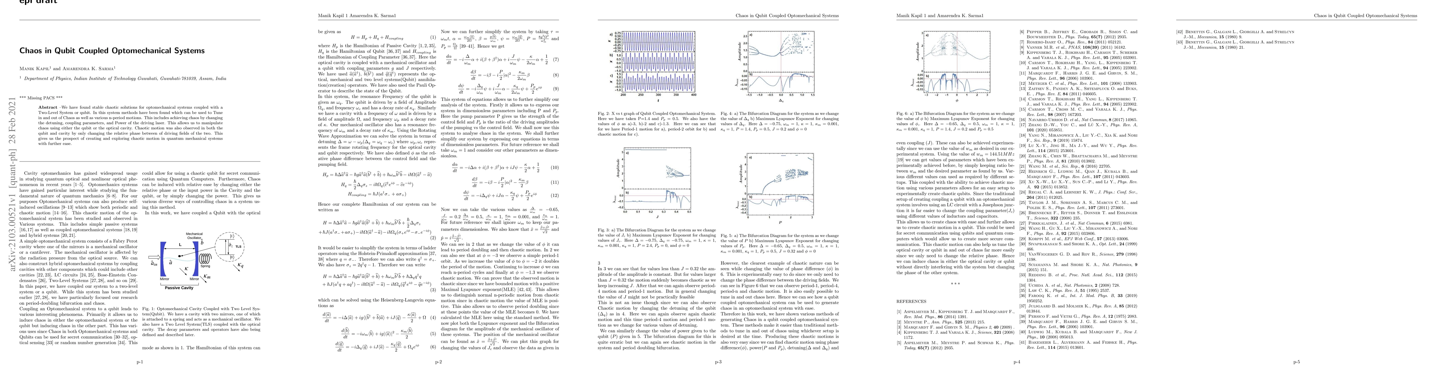 This research reveals stable chaotic dynamics in optomechanical systems coupled with qubits, allowing for manipulation of chaos via detuning, coupling parameters, and laser power. The study also demonstrates the ability to control chaotic motion through changes in the relative phase between driving fields, offering new avenues for exploring quantum chaos.