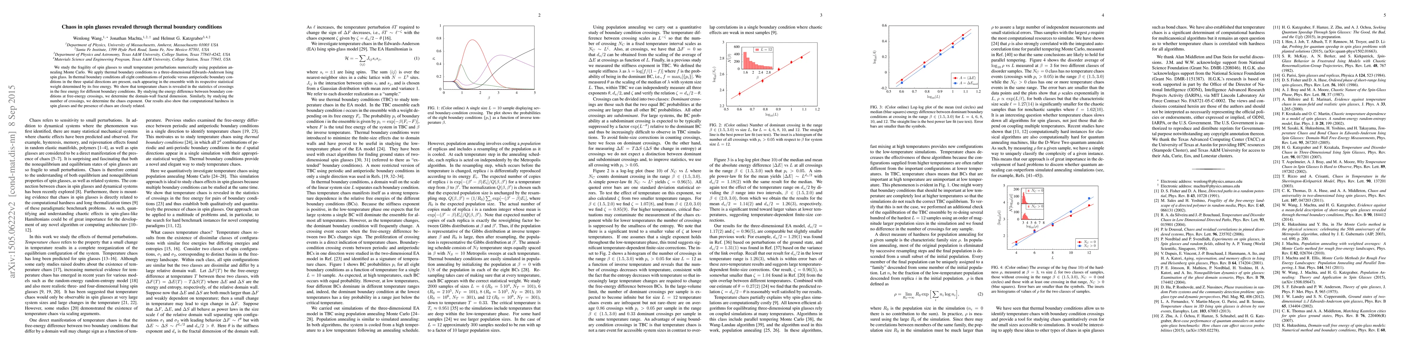 This paper investigates the sensitivity of spin glasses to temperature changes using population annealing Monte Carlo, revealing chaos in free energy statistics under thermal boundary conditions. It determines the domain-wall fractal dimension and chaos exponent, showing a close relationship between computational hardness and chaos in spin glasses.