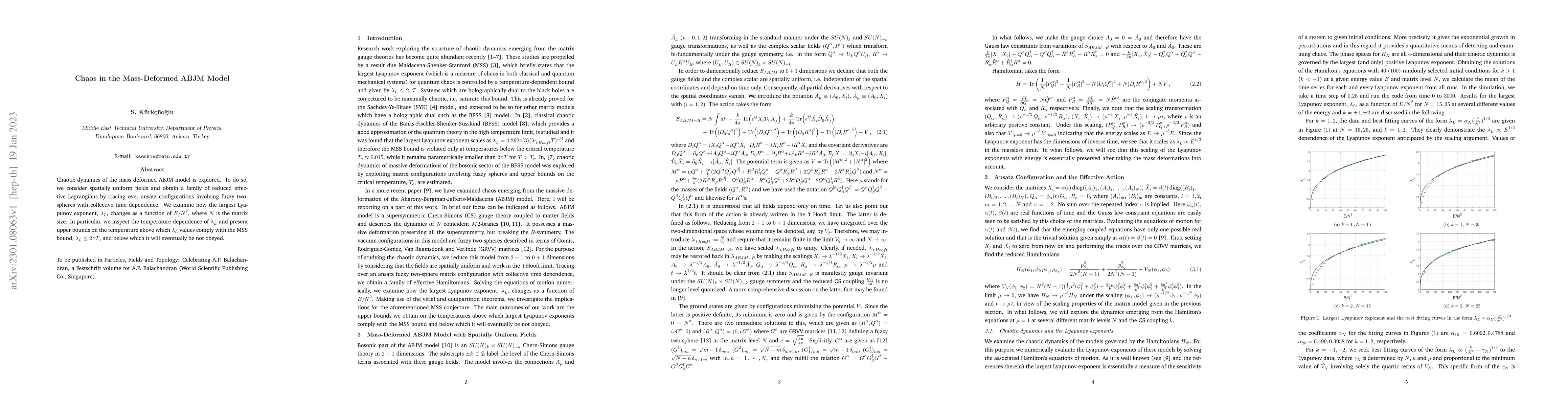 This paper explores chaotic dynamics in the mass-deformed ABJM model through effective Lagrangians derived from fuzzy two-spheres. It investigates the largest Lyapunov exponent's temperature dependence and establishes bounds on temperatures where the MSS bound is upheld.