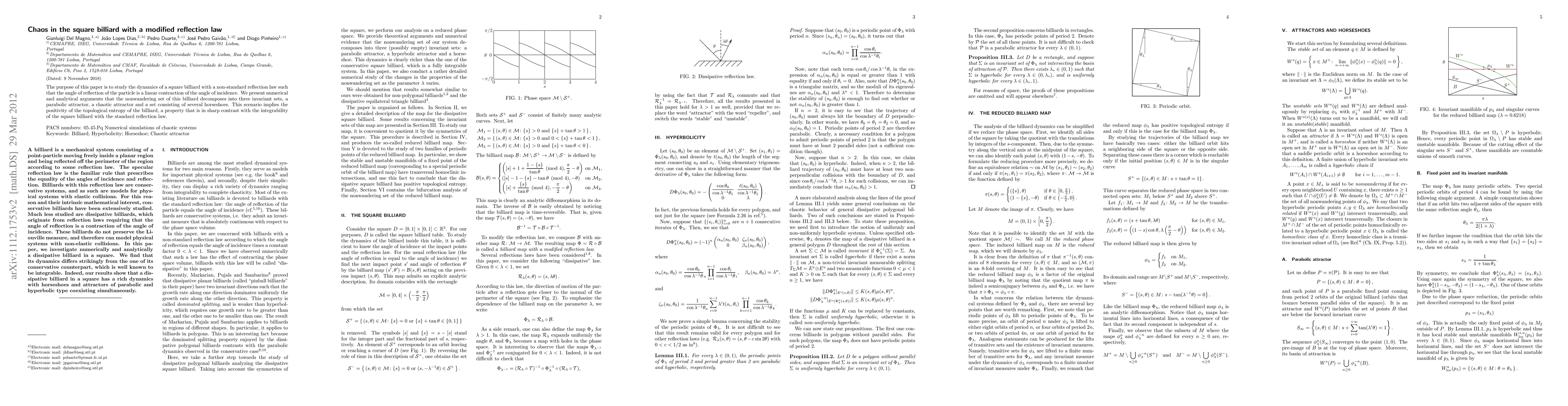 The purpose of this paper is to study the dynamics of a square billiard with a non-standard reflection law such that the angle of reflection of the particle is a linear contraction of the angle of incidence. We present numerical and analytical arguments that the nonwandering set of this billiard decomposes into three invariant sets, a parabolic attractor, a chaotic attractor and a set consisting of several horseshoes. This scenario implies the positivity of the topological entropy of the billiard, a property that is in sharp contrast with the integrability of the square billiard with the standard reflection law.
