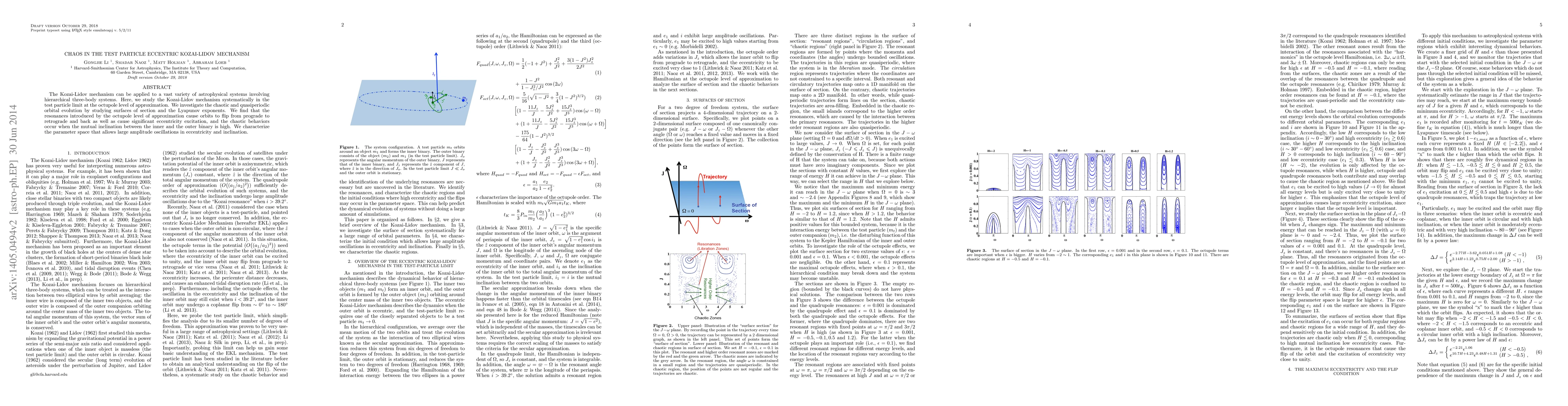 The Kozai-Lidov mechanism can be applied to a vast variety of astrophysical systems involving hierarchical three-body systems. Here, we study the Kozai-Lidov mechanism systematically in the test particle limit at the octupole level of approximation. We investigate the chaotic and quasiperiodic orbital evolution by studying surfaces of section and the Lyapunov exponents. We find that the resonances introduced by the octupole level of approximation cause orbits to flip from prograde to retrograde and back as well as cause significant eccentricity excitation, and the chaotic behaviors occur when the mutual inclination between the inner and the outer binary is high. We characterize the parameter space that allows large amplitude oscillations in eccentricity and inclination.