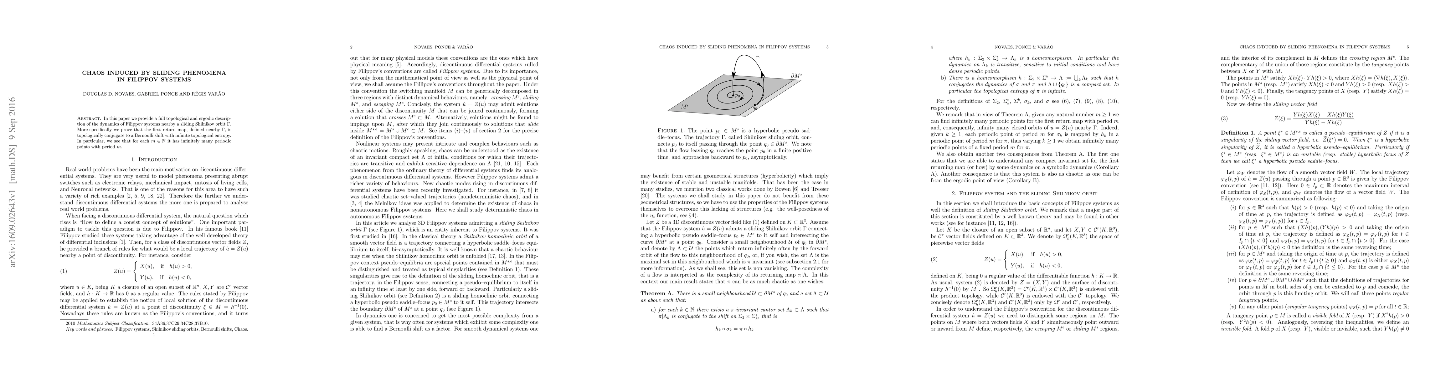 This paper investigates the chaotic dynamics of Filippov systems near a sliding Shilnikov orbit, proving that the first return map is topologically conjugate to a Bernoulli shift with infinite entropy, exhibiting infinitely many periodic points of any natural period.