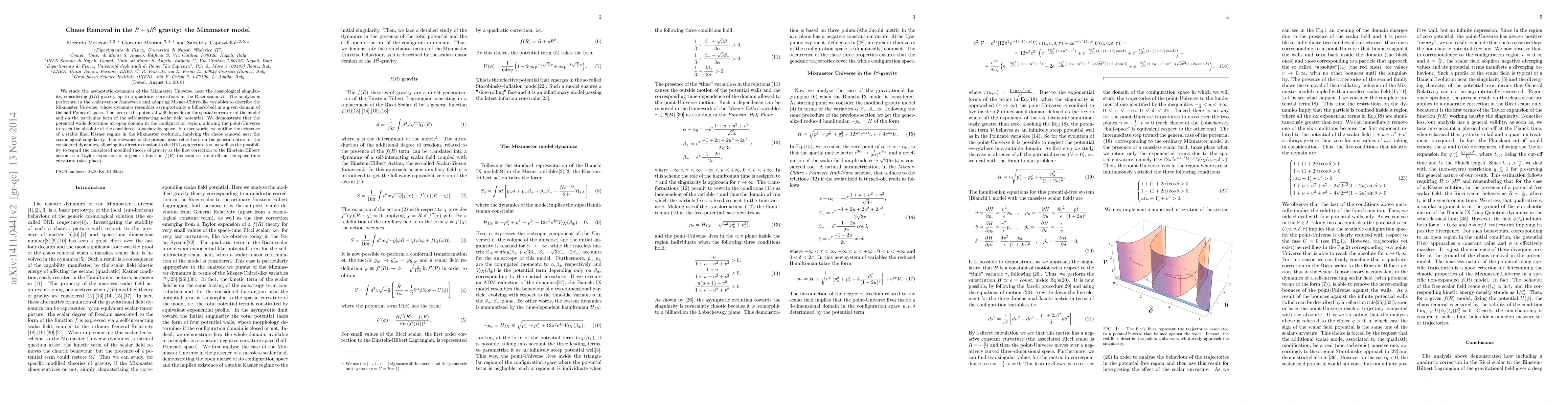 This paper investigates the asymptotic dynamics of the Mixmaster Universe in $f(R)$ gravity, showing that potential walls in the scalar-tensor framework allow for a stable final Kasner regime, thereby removing chaos near the cosmological singularity. The analysis extends to implications for the BKL conjecture and suggests the modified gravity model as a first-order correction to Einstein-Hilbert action.