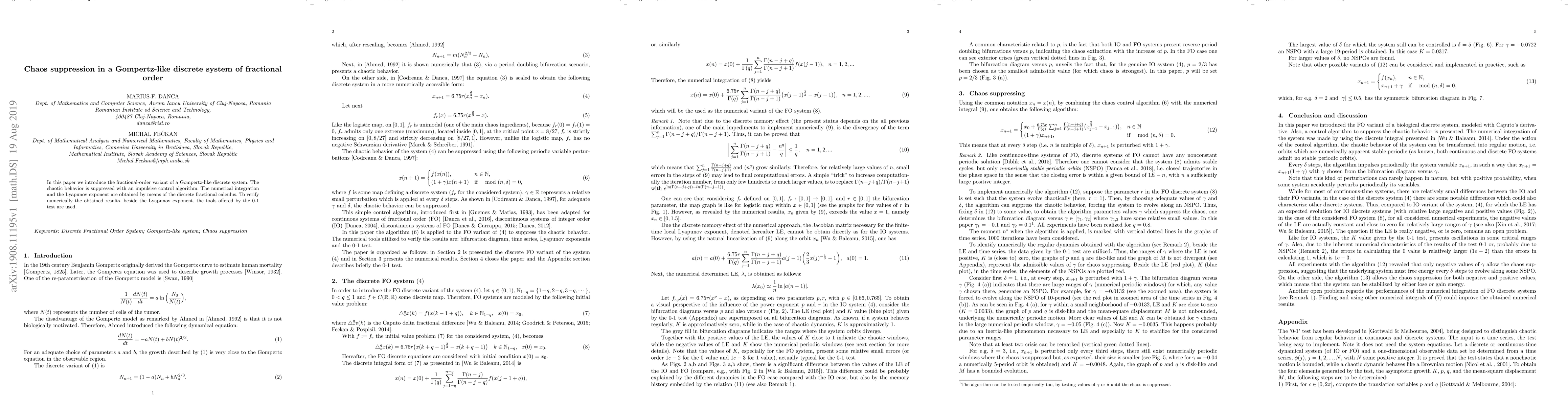 Researchers developed a fractional-order variant of a Gompertz-like discrete system to study chaos suppression with an impulsive control algorithm, using numerical integration and Lyapunov exponent analysis to verify results.