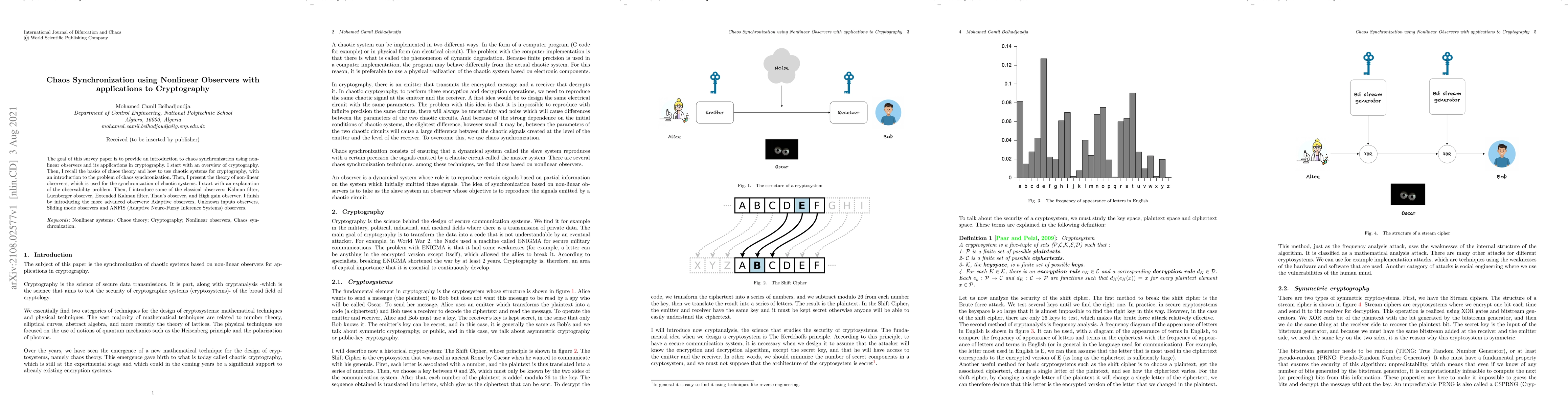 This paper surveys chaos synchronization using nonlinear observers, focusing on its cryptographic applications. It begins with an overview of cryptography and chaos theory, then delves into the theory of nonlinear observers, including classical and advanced types, to achieve chaos synchronization.