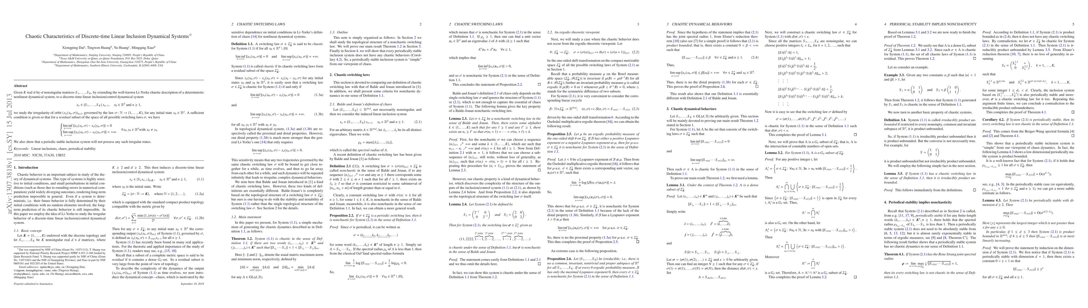 The paper presents a novel definition and analysis of chaotic switching laws in discrete-time linear inclusion dynamical systems, linking spectral properties to chaotic behavior.