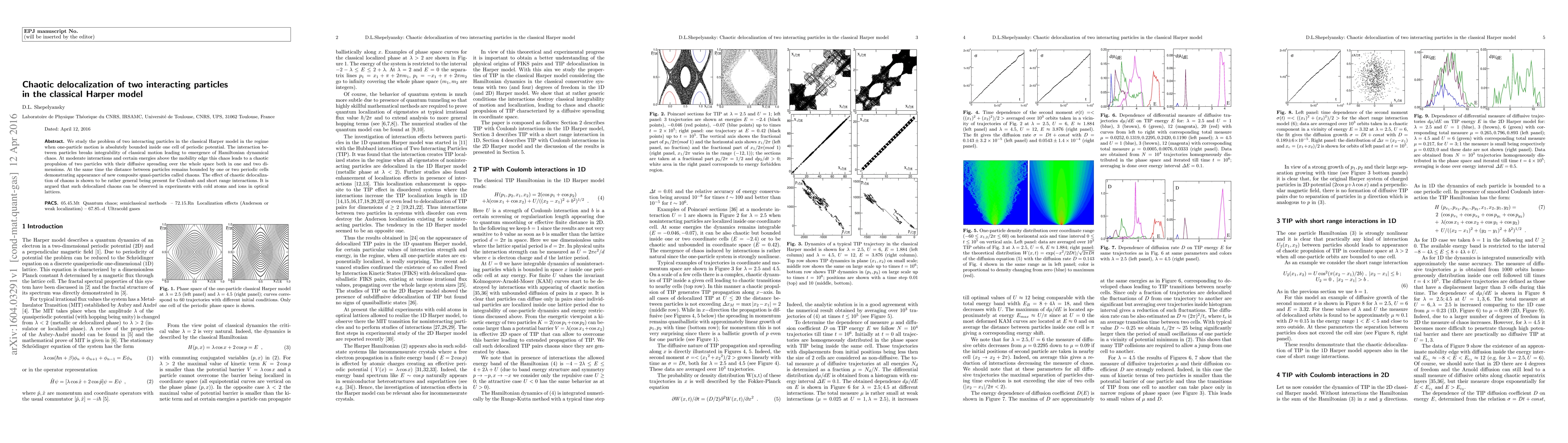 This paper investigates the chaotic dynamics of two interacting particles in the classical Harper model, revealing that interaction-induced chaos leads to the delocalization of particles, forming new composite quasi-particles termed chaons, which can be observed in cold atom experiments. The chaotic propulsion and bounded distance between particles suggest a general phenomenon applicable to various interaction types.