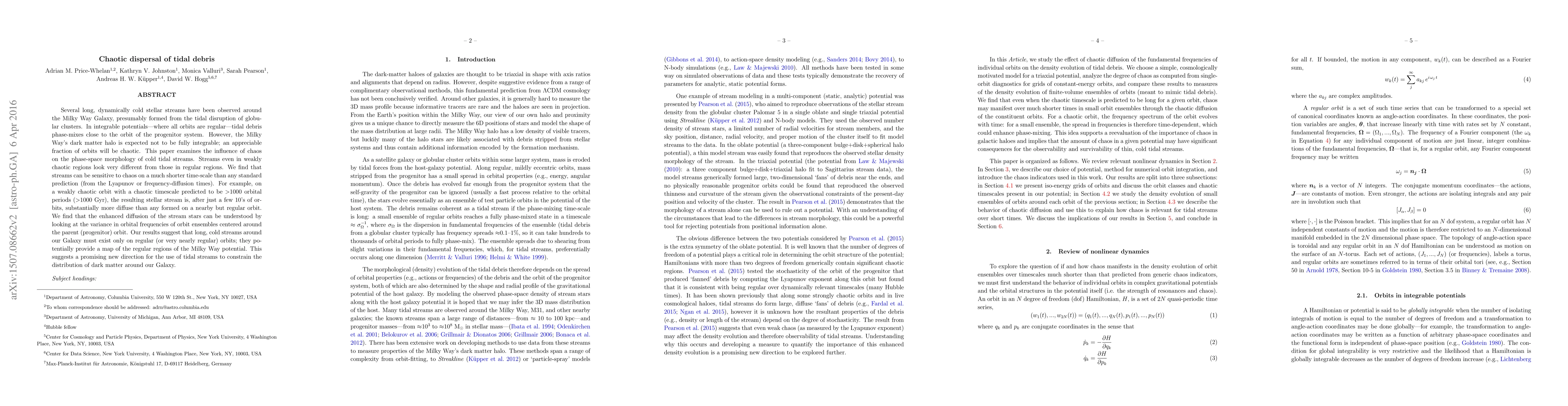 Tidal debris streams in the Milky Way Galaxy exhibit chaotic behavior on shorter timescales than predicted, suggesting they form only around regular orbits, providing a potential map of the galaxy's dark matter distribution.