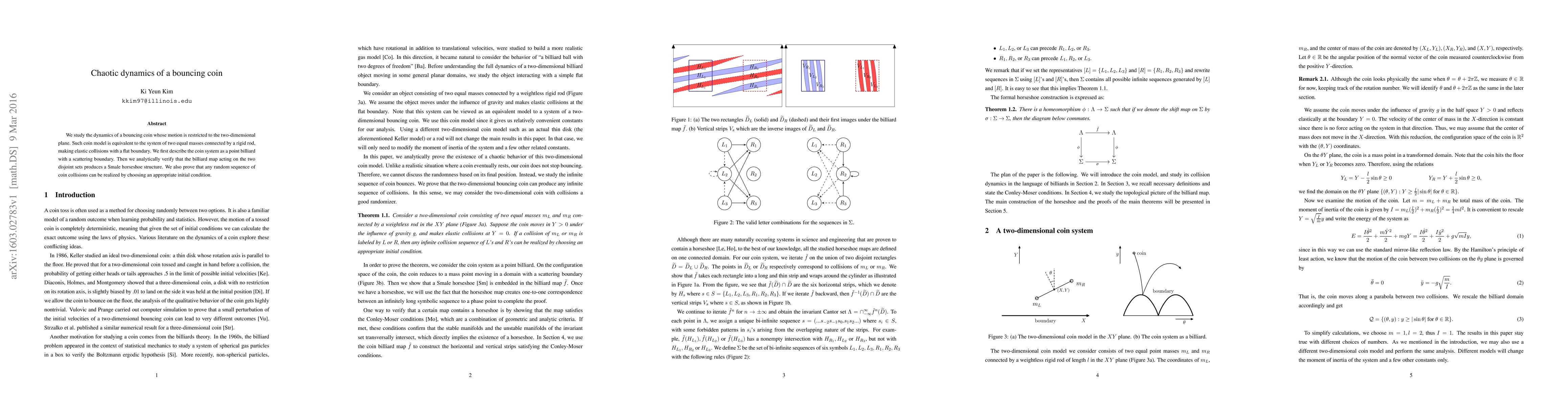 This research explores the chaotic motion of a bouncing coin, modeled as a rigid rod with elastic collisions. It's shown that this system exhibits a Smale horseshoe structure, indicating chaotic dynamics. Any random collision sequence can be replicated through specific initial conditions.
