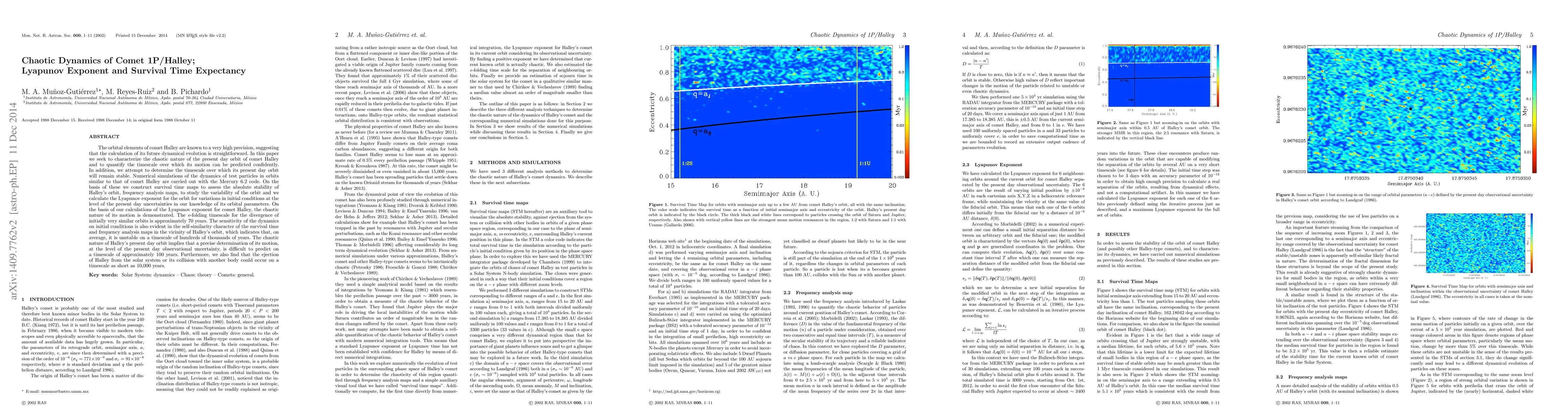 This paper investigates the chaotic dynamics of Comet 1P/Halley using numerical simulations and the Lyapunov exponent to quantify its orbital stability. The study finds that Halley's orbit is chaotic, with an e-folding timescale of 70 years, indicating it is unstable on a timescale of hundreds of thousands of years and potentially ejectable from the solar system in as few as 10,000 years.