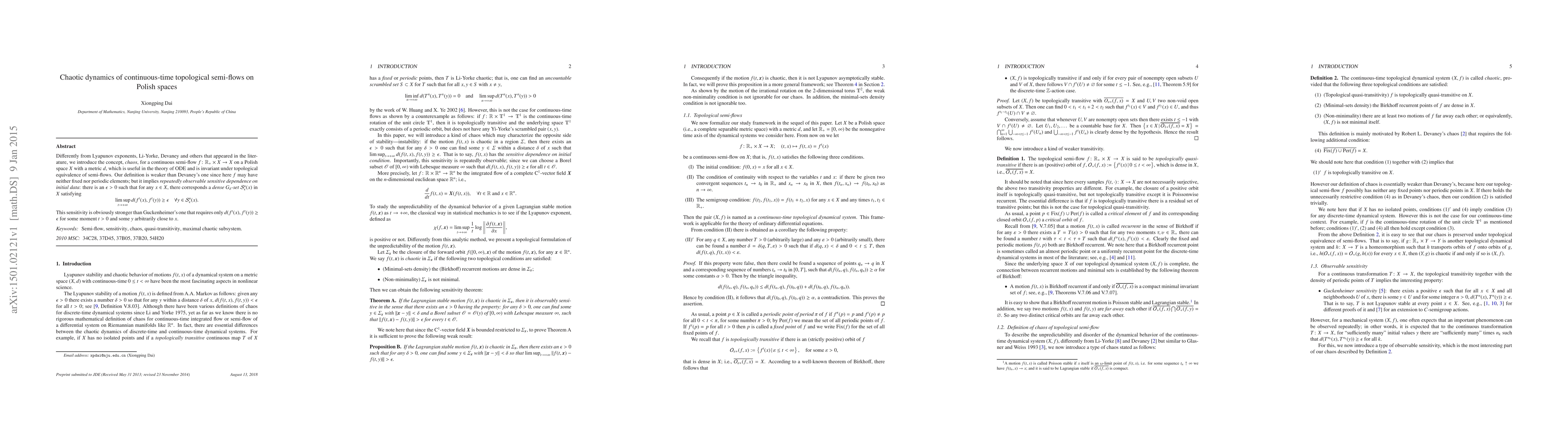 In this paper, we study the chaotic dynamics of a continuous-time topological semi-flow on a Polish space.