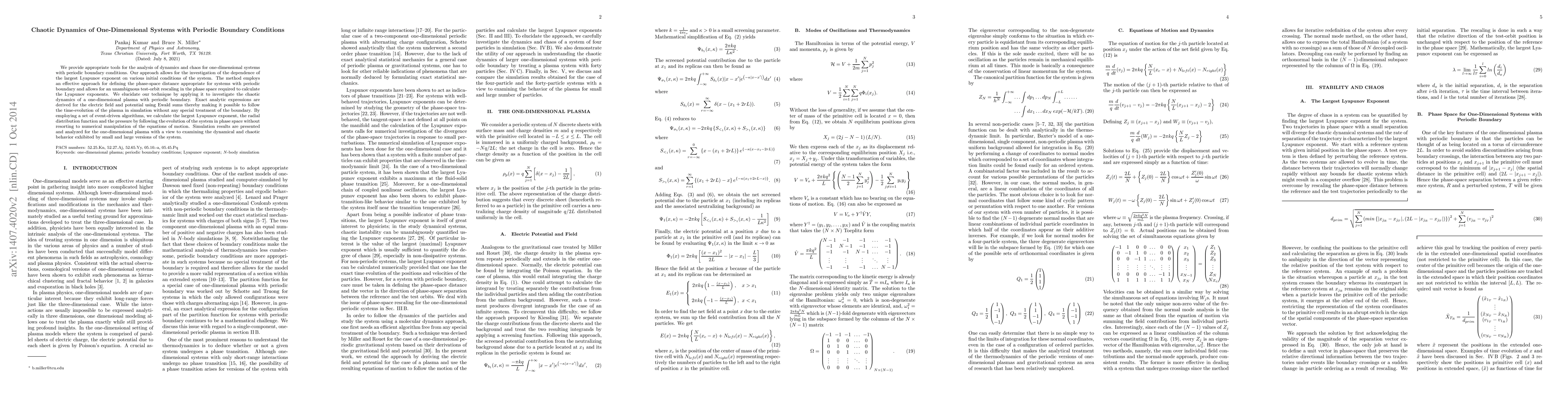 This paper introduces a method to analyze chaos in one-dimensional systems with periodic boundaries, focusing on the largest Lyapunov exponent. It uses Ewald sums to derive exact expressions for electric field and potential, facilitating the study of plasma dynamics without boundary complications.