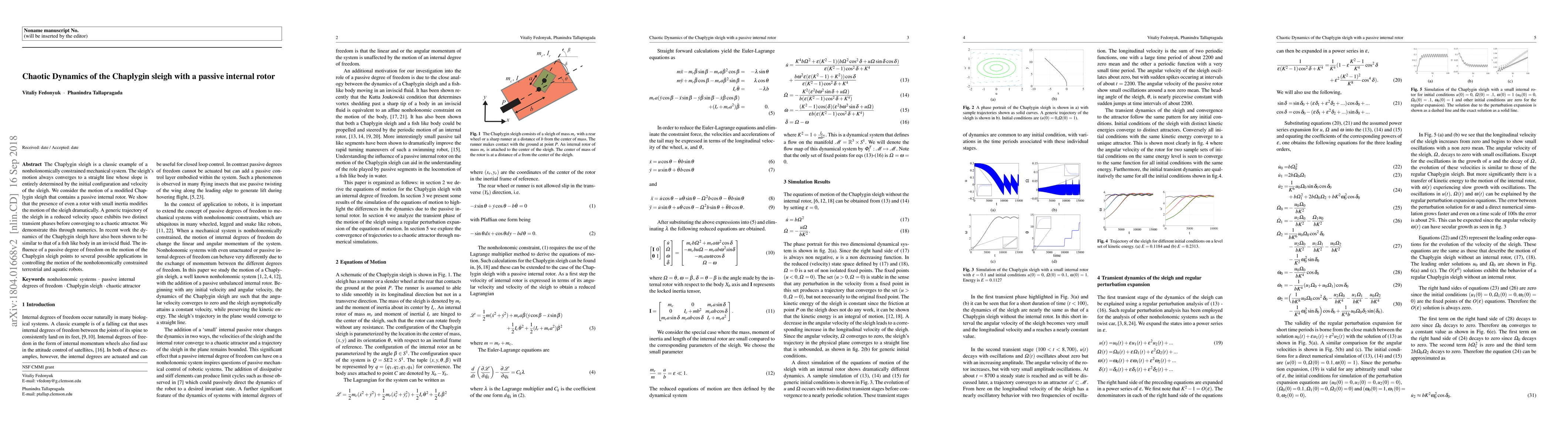 This paper investigates the chaotic dynamics of a modified Chaplygin sleigh equipped with a passive internal rotor, demonstrating that even a small rotor significantly alters the sleigh's motion. The study reveals that the sleigh's trajectory exhibits two transient phases before converging to a chaotic attractor, highlighting potential applications in controlling nonholonomically constrained robots.