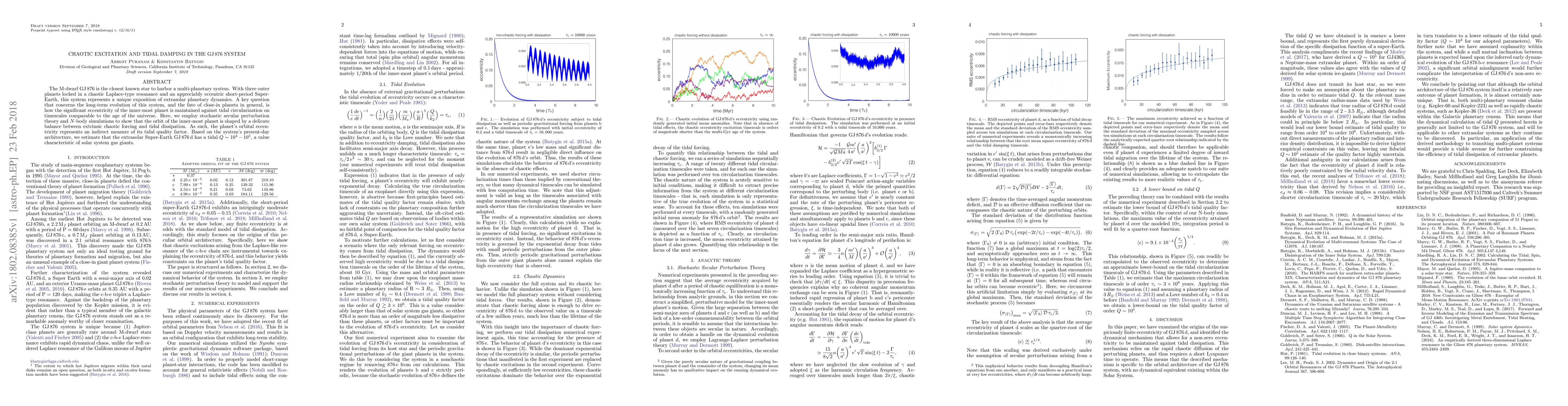 This study uses stochastic secular perturbation theory and N-body simulations to analyze the GJ 876 planetary system. It reveals that the innermost planet's eccentricity is maintained by a balance between chaotic forcing and tidal dissipation, estimating its tidal quality factor (Q) around 10,000-100,000, similar to solar system gas giants.